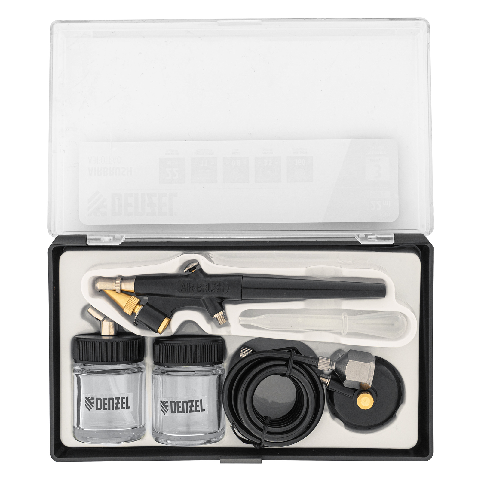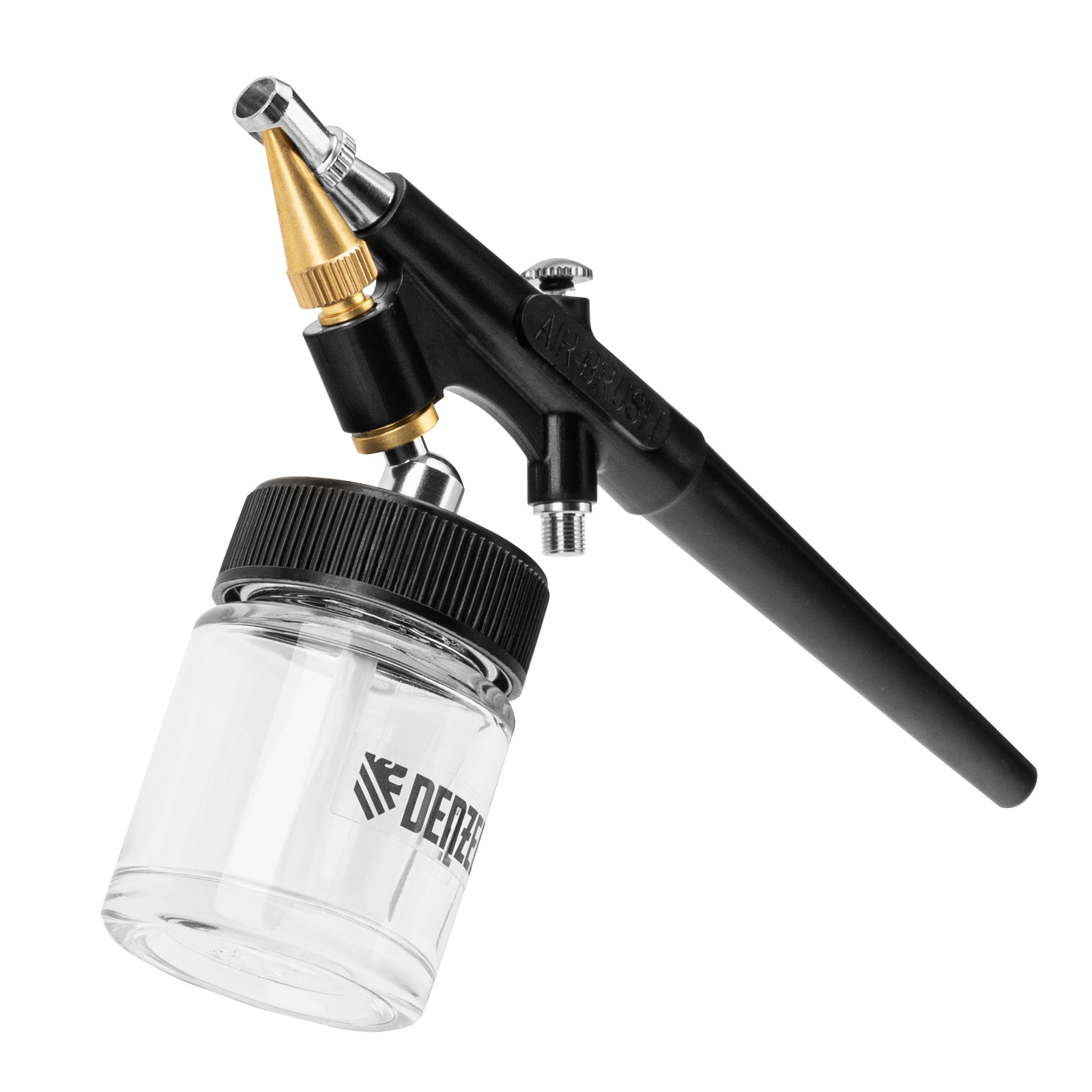 Аэрограф Denzel AB2 57311 с нижним бачком объемом 22 мл расходует 11 л сжатого воздуха в минуту и формирует струю краски диаметром 0,8 мм. Предназначен для выполнения тонких художественно-декоративных и покрасочных работ. Имеет курок одинарного действия: скорость воздушного потока постоянна на протяжении всего времени работы. Аэрограф позволяет создавать рисунки на кузовных элементах автомобилей, мото- и другой техники, а также на прочих поверхностях.