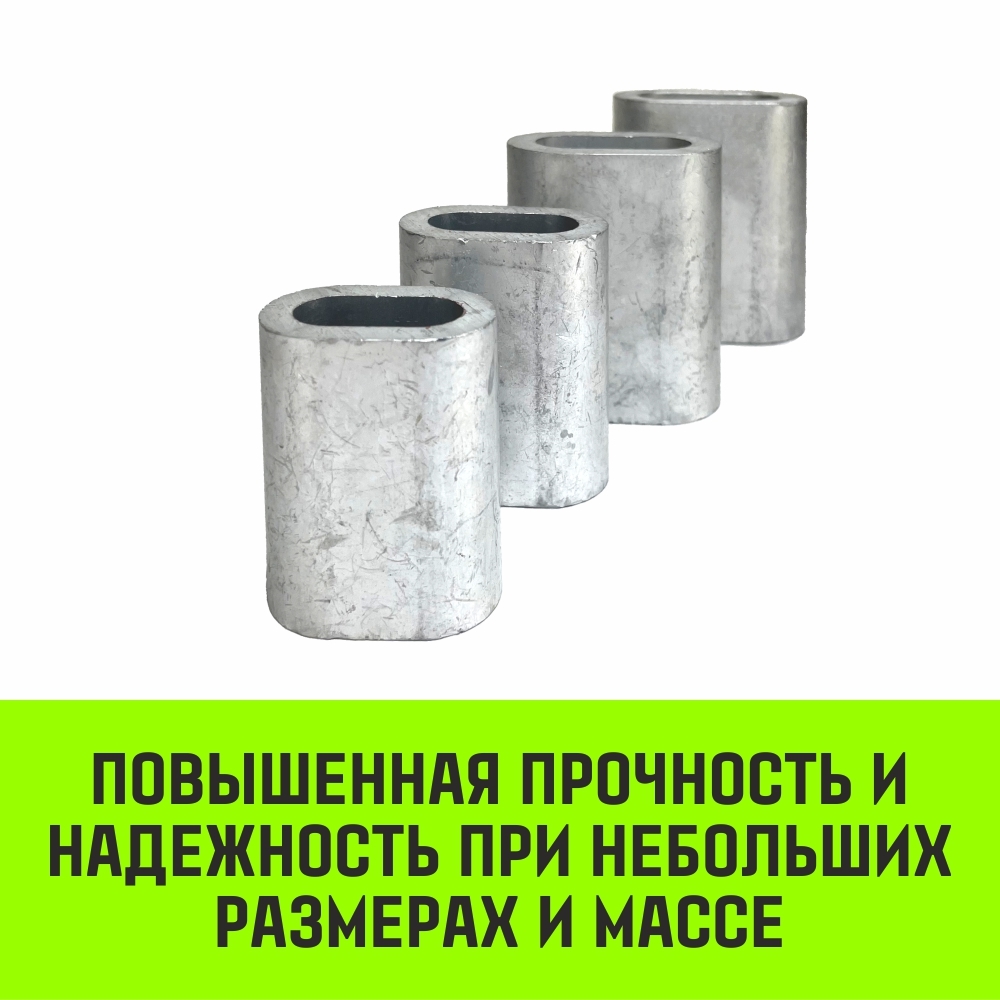 Алюминиевые втулки HITCH – это прочные и долговечные изделия, изготавливаемые из бесшовного трубного профиля. Они применяются для надежного соединения металлических канатов путем опрессовки, обеспечивая прочность и безопасность строп и других грузозахватных устройств. Преимущества: