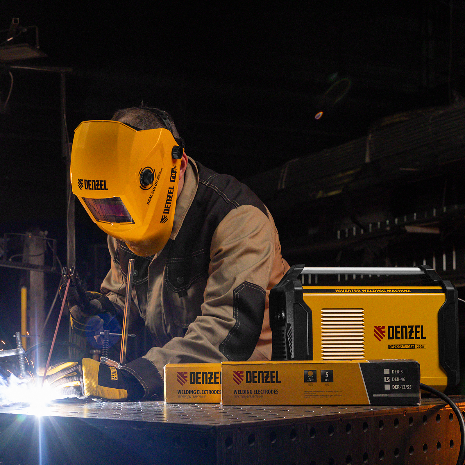 Инверторный аппарат дуговой сварки Denzel DM-220 Standart 94326 имеет продолжительность включения 60% и работает с со сварочным током до 220 А. Сварочные провода с увеличенным до 25 кв. мм сечением позволяют избежать потерь тока и не нагреваются во время работы с максимальной нагрузкой. Аппарат способен сваривать конструкции из низкоуглеродистой стали электродами диаметром до 5 мм. Обеспечивает бесперебойную работу даже при нестабильном напряжении. Устройство пригодится сотрудникам коммунальных служб, также будет полезно в быту.