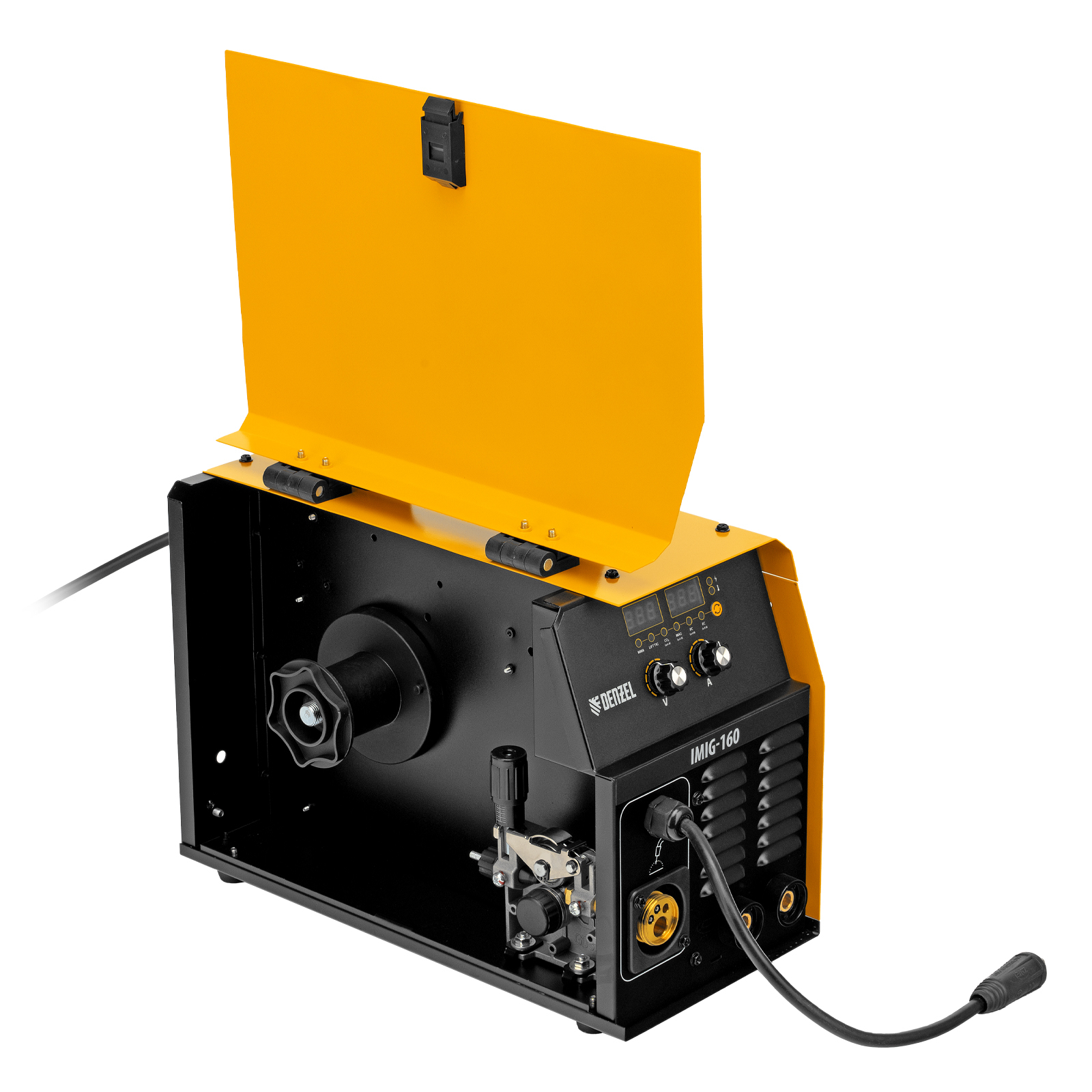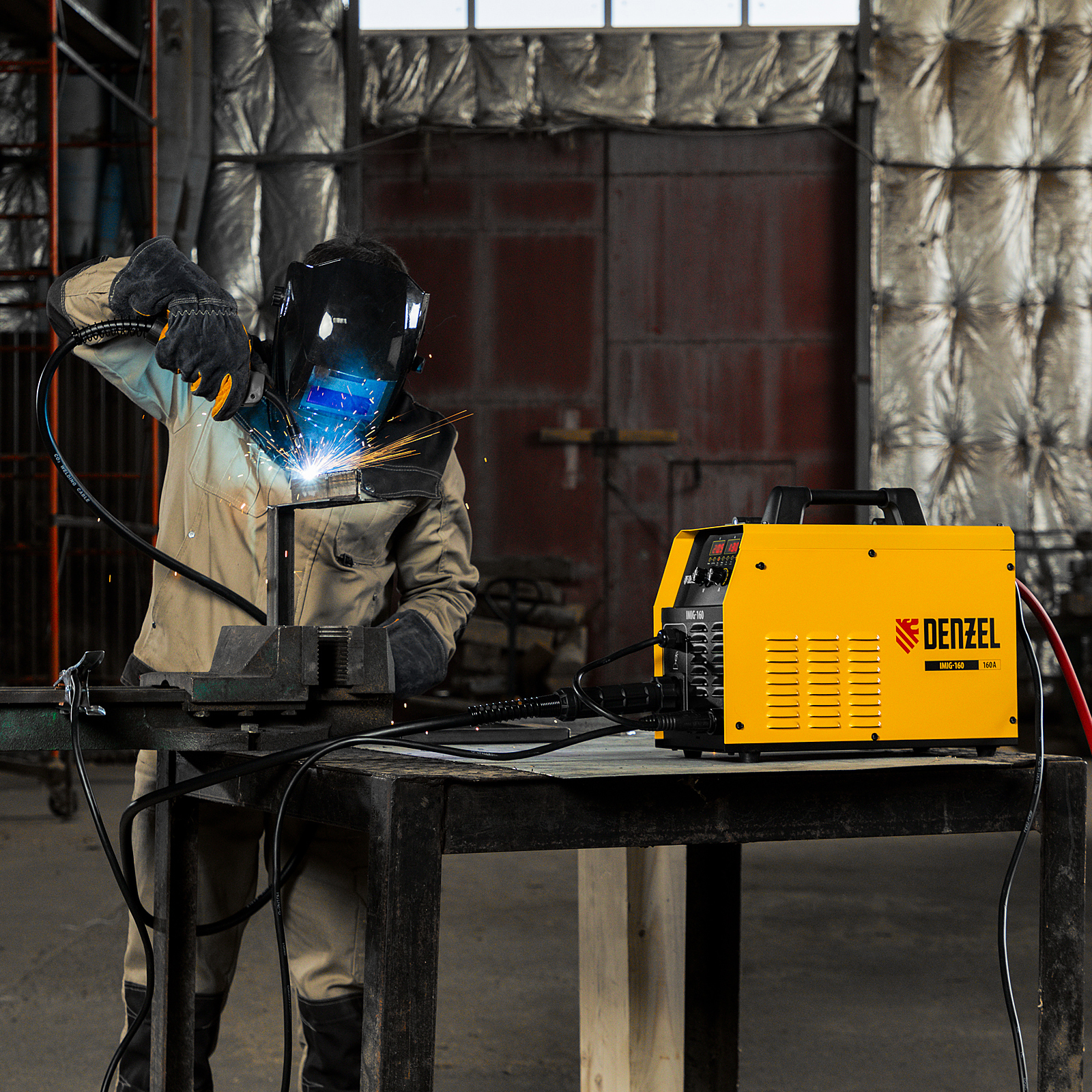 Инверторный аппарат полуавтоматической сварки Denzel IMIG-160 94314 работает со сварочным током до 160 А, характеризуется продолжительностью включения 60% и совместим с катушками до 5 кг. Используется для сварки углеродистых и нержавеющих сталей с использованием постоянного тока. Эффективен для работы с тонкостенными заготовками.,Сварочный аппарат произведен по технологии IGBT, что обеспечивает стабильную и эффективную работу на протяжении длительного времени. Синергетическое управление упрощает работу и позволяет получить сварной шов неизменно высокого качества. Аппарат автоматически подбирает оптимальные значения напряжения, скорости подачи проволоки и другие параметры.