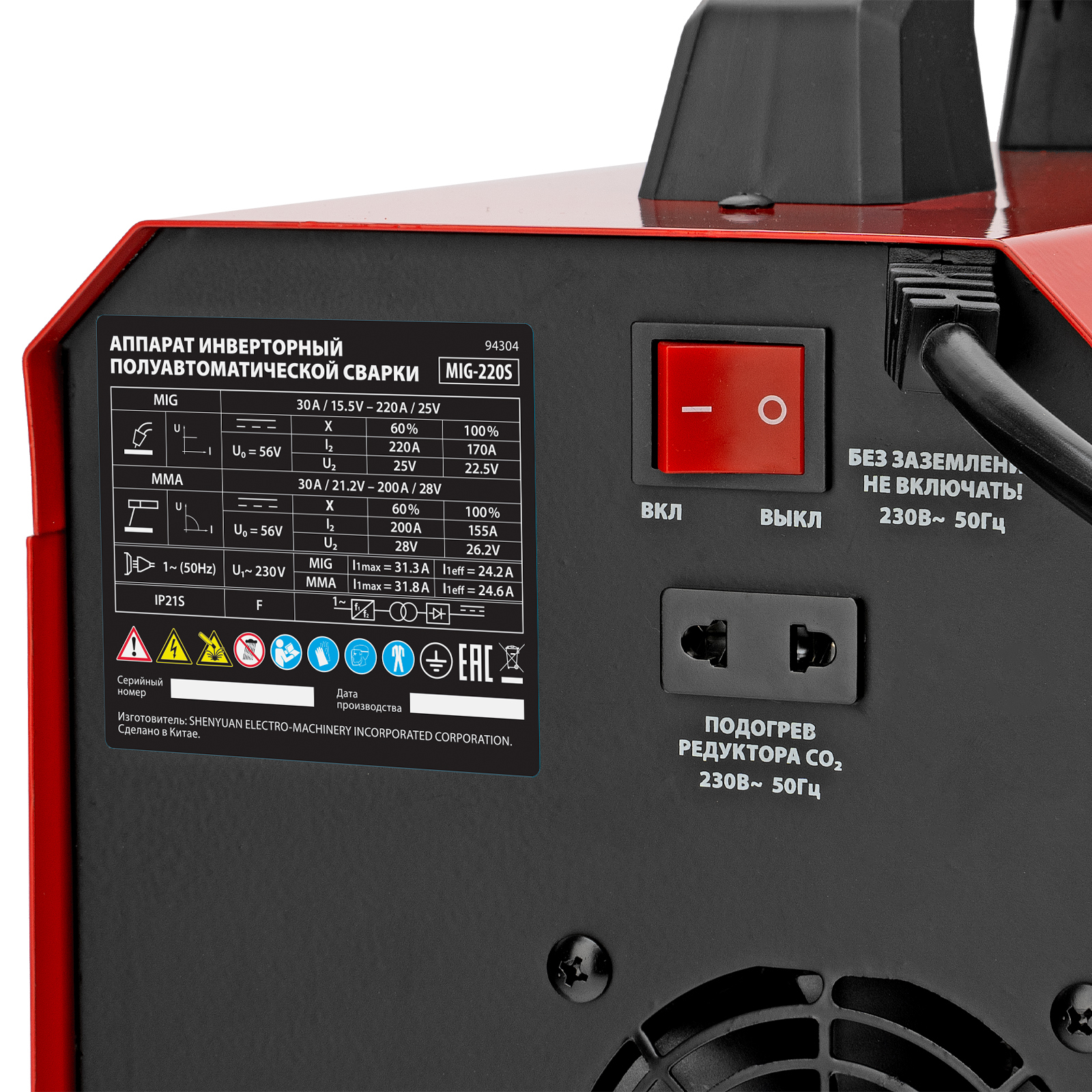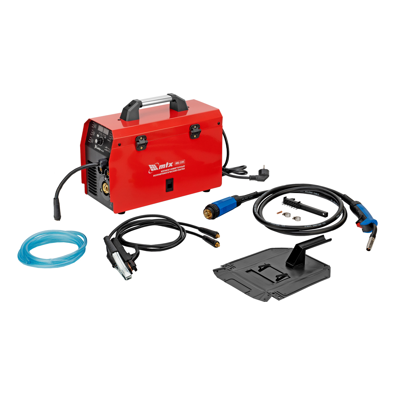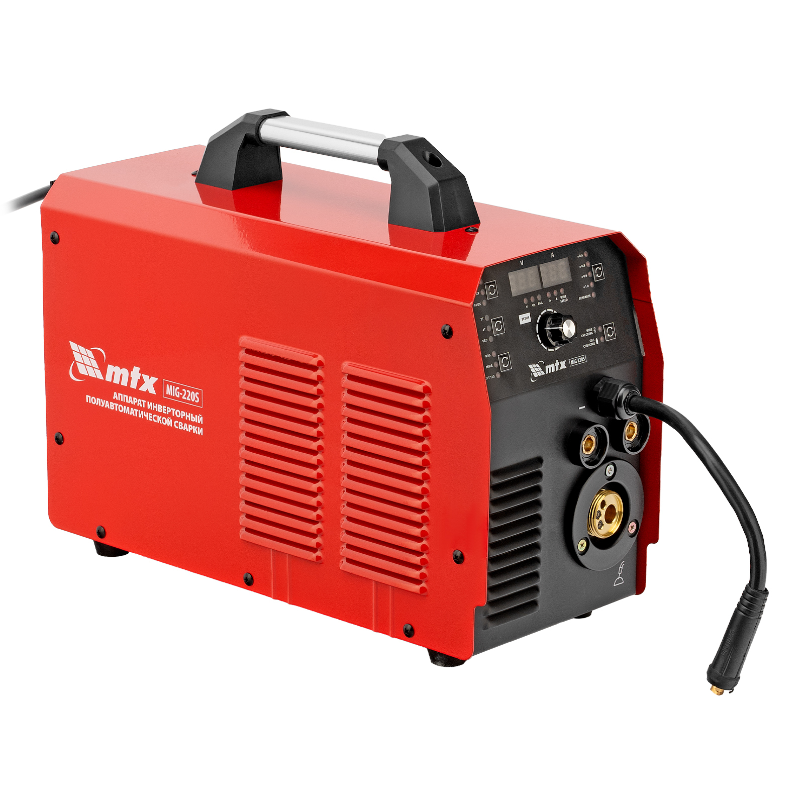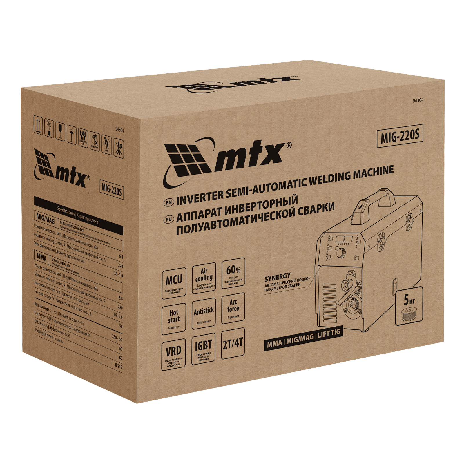 Инверторный аппарат полуавтоматической сварки MTX MIG-220S 94304, предназначенный для сварки на максимальном токе до 220 А, имеет продолжительность включения 60% и совместим с катушками весом до 5 кг. Используется для работы со сталями, черными и цветными металлами. Сварочный аппарат изготовлен с использованием передовой технологии IGBT, позволяющей получать стабильный сварочный ток на выходе. Аппарат имеет высокий КПД при низком энергопотреблении, способен работать при пониженном до 180 В напряжении.