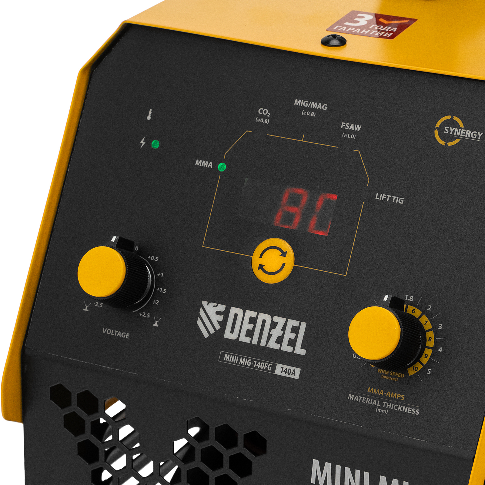 Инверторный аппарат полуавтоматической сварки Denzel Mini MIG-140FG 94322 с продолжительностью включения 60% работает с максимальным сварочным током 140 А. Используется для сварки сталей и черных металлов. Применение передовой инверторной технологии IGBT обеспечивает высокие эксплуатационные качества аппарата и его стабильную работу на протяжении длительного времени. Устройство будет полезно в быту и профессиональной сфере.