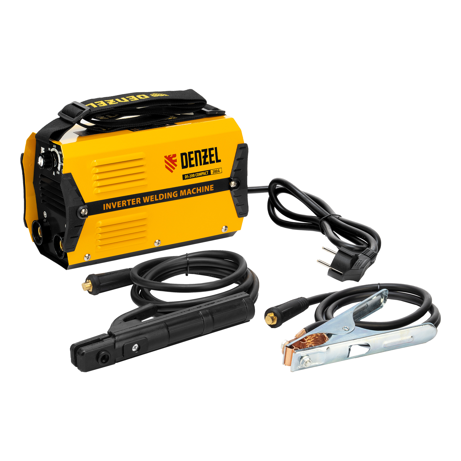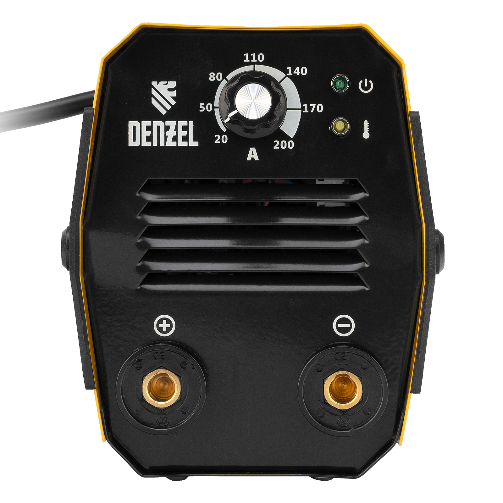 Инверторный аппарат дуговой сварки Denzel DS-200 Compact 94373 с максимальной силой тока 200 А имеет продолжительность включения 70% и работает с электродами диаметром 1,6-5 мм. Используется для сварки стальных металлоконструкций, будет полезен в мастерской, гараже или на даче. При отсутствии розетки его можно подключить к генератору. Аппарат прост в эксплуатации и подойдет как профессионалу, так и начинающему мастеру. Способен работать даже при низком входном напряжении 150 В, имеет высокий показатель продолжительности включения 70% и быстро остывает, что увеличивает скорость и эффективность сварки.