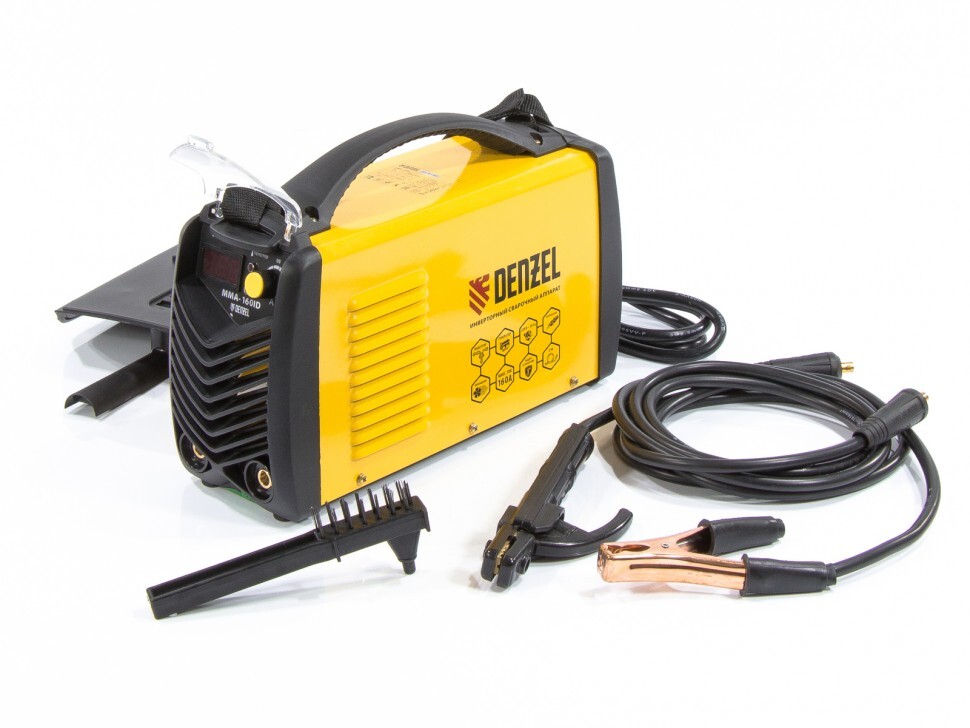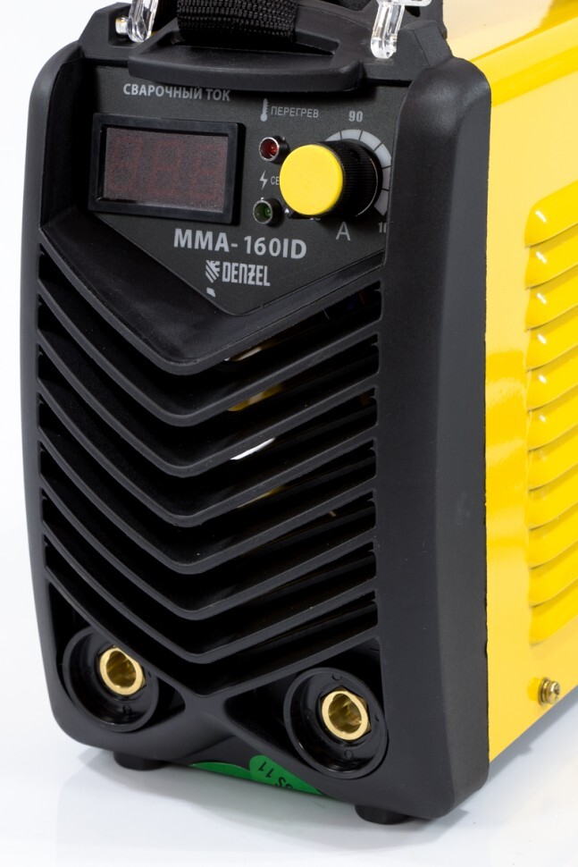 Аппарат инверторной дуговой сварки Denzel MMA-160ID 94345 с проводом длиной 2 м характеризуется величиной ПВР 60% и позволяет работать с максимальным сварочным током 160 А электродами диаметром 1,6-3,2 мм. Представляет собой компактный аппарат для бытового использования на даче, в гараже или мастерской. Уверенно работает даже при нестабильном входном напряжении в диапазоне 150-250 В, удобен для сварки в малодоступных местах.