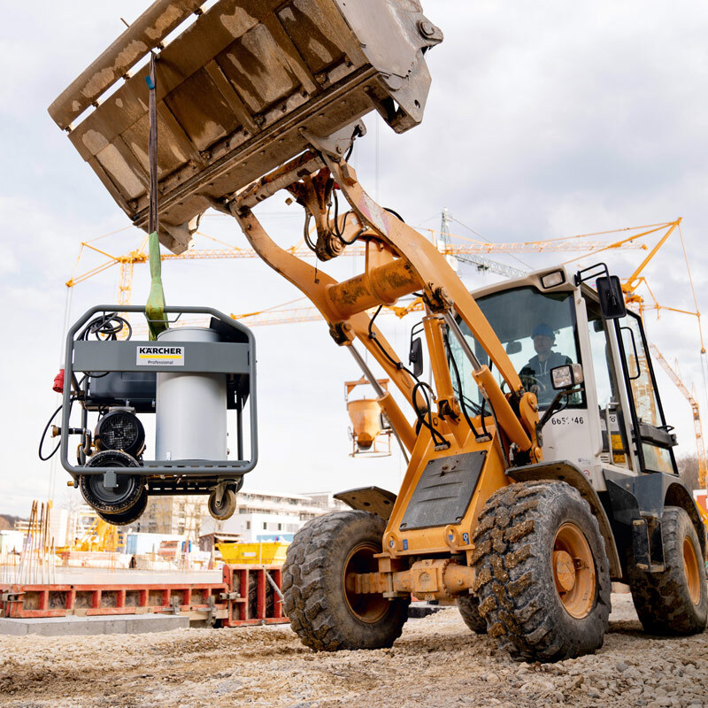 Прочная стальная рама защищает аппарат от повреждений и даёт дополнительные возможности транспортировки. Большой 30-литровый дизельный бак для продолжительной работы без остановок. Безопасность важных компонентов аппарата: насоса и водонагревателя - обеспечивается хорошо известными и проверенными способами, таким как термореле, предохранительный блок, датчик температуры и датчик выхлопных газов.
