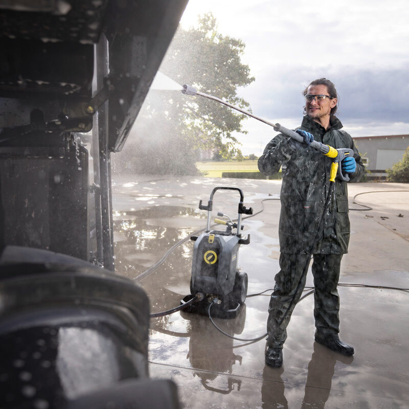 Долговечные компоненты для длительного срока службы даже в сложных условиях эксплуатации: надёжный низкооборотный 4-полюсный трёхфазный электродвигатель, мощная трёхпоршневая аксиальная помпа с головкой блока цилиндров из прочной, не подверженной коррозии латуни. Входной патрубок водяной помпы также из высококачественной латуни. Стальные поршни с керамическим покрытием рабочих поверхностей. Пистолет высокого давления EASY!Force Advanced и система быстрого соединения EASY!Lock экономят силы и время. Разъёмы EASY!Lock в 5 раз ускоряют присоединение и отсоединение принадлежностей в сравнении с резьбовыми разъёмами. Работу дополнительно облегчают вспомогательные системы и светодиодный индикатор состояния.