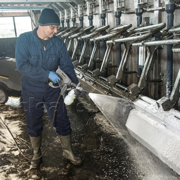Аппарат оснащен мощным аксиальным трехпоршневым насосом с непосредственным приводом от низкооборотного 4-х-полюсного электродвигателя. Износостойкие стальные поршни с керамическим покрытием в зоне трения. Два бака для чистящего средства, возможность работы с двумя струйными трубками, а также высокая производительность по потоку воды и высокое рабочее давление гарантируют эффективную и быструю очистку при любых объемах загрязнений.
