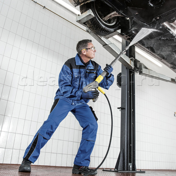 Система эластичного демпфирования (SDS), компенсирует колебания и скачки в системе высокого давления, тем самым увеличивая срок службы всех ее компонентов, а также уменьшая вибрации. Безопасность эксплуатации обеспечивается автоматическим отключением горелки при недостатке воды или образовании нагара. Автоматический датчик пламени доступен как дополнительная опция. Отличная мобильность аппарата достигается благодаря следованию принципу детской трехколесной коляски - шасси с большими прорезиненными задними колесами и передним поворотным колесиком. Удобному перемещению также способствует упорная площадка для ноги для подъема передней части аппарата (например, при преодолении ступеней).