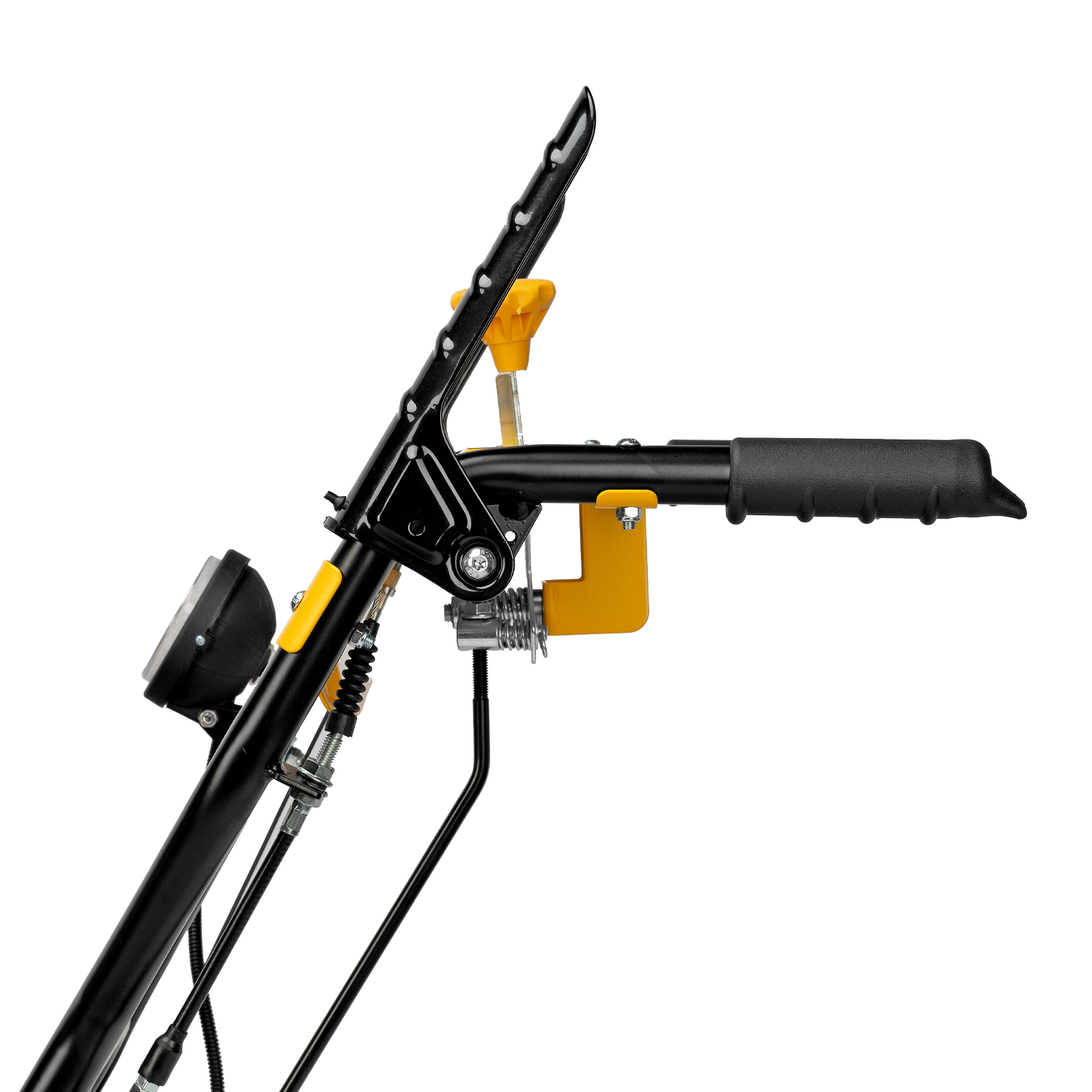 - Надежная конструкция — высокая стальная панель придает жесткость раме и повышает комфорт использования бензинового снегоуборщика.
