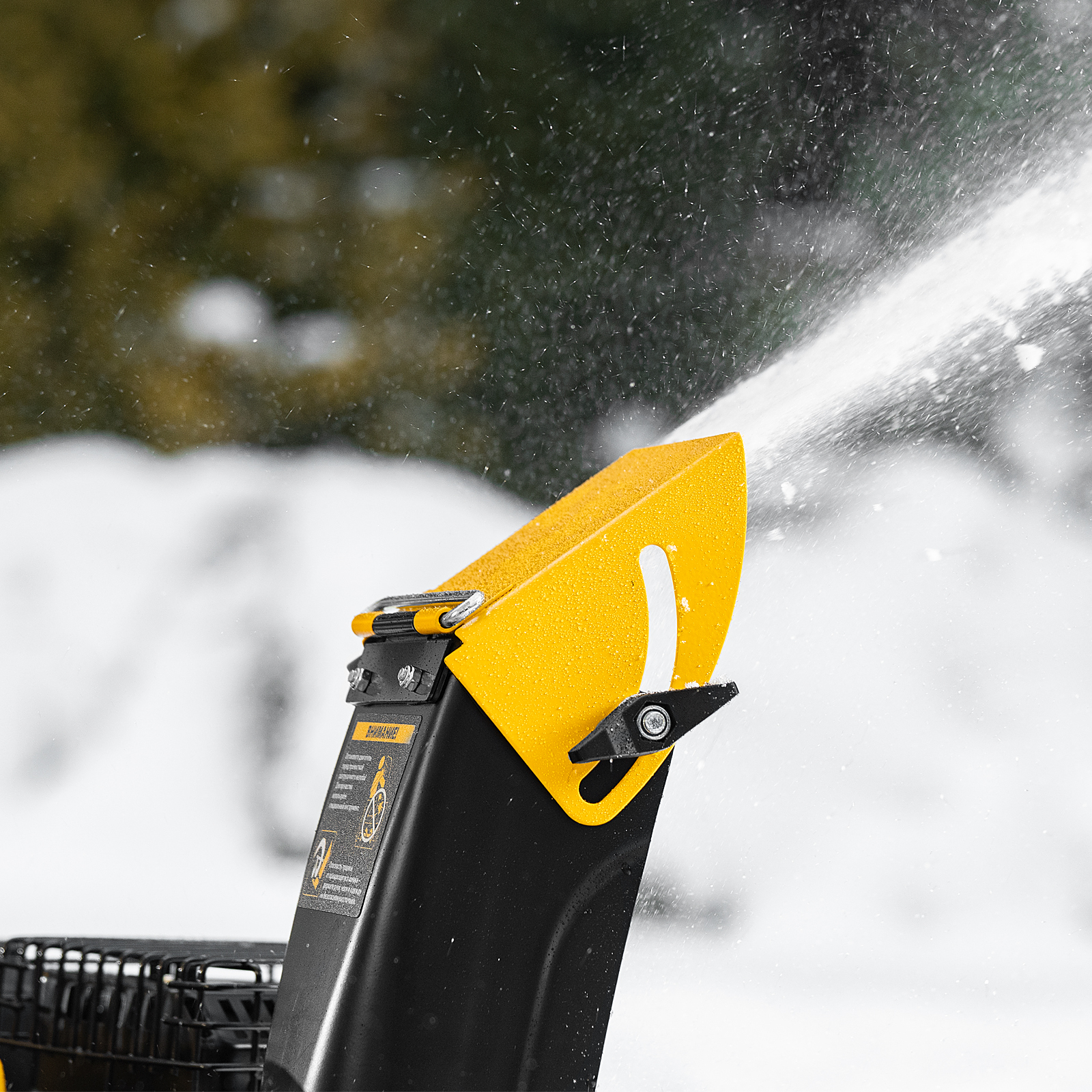 - Комфортная работа — рычаг поворота желоба позволяет легко выбрать желаемое направление выброса снега, а яркая LED-фара позволяет работать в условиях плохой видимости.