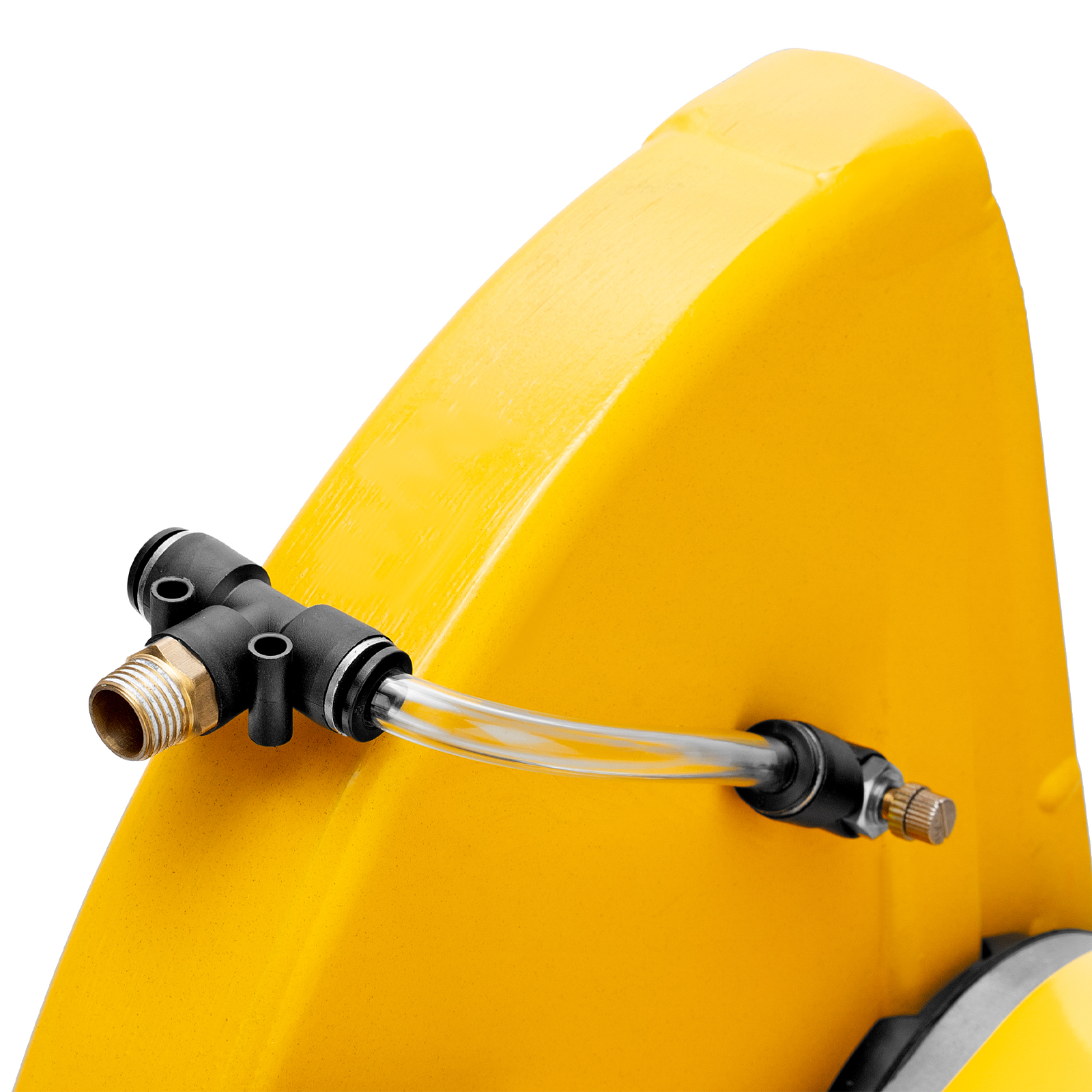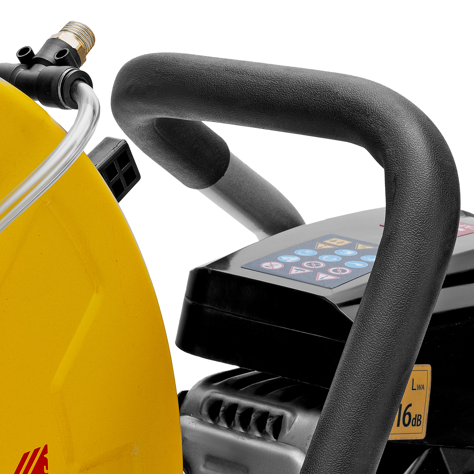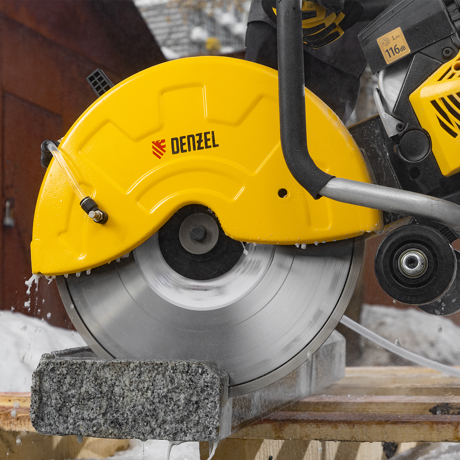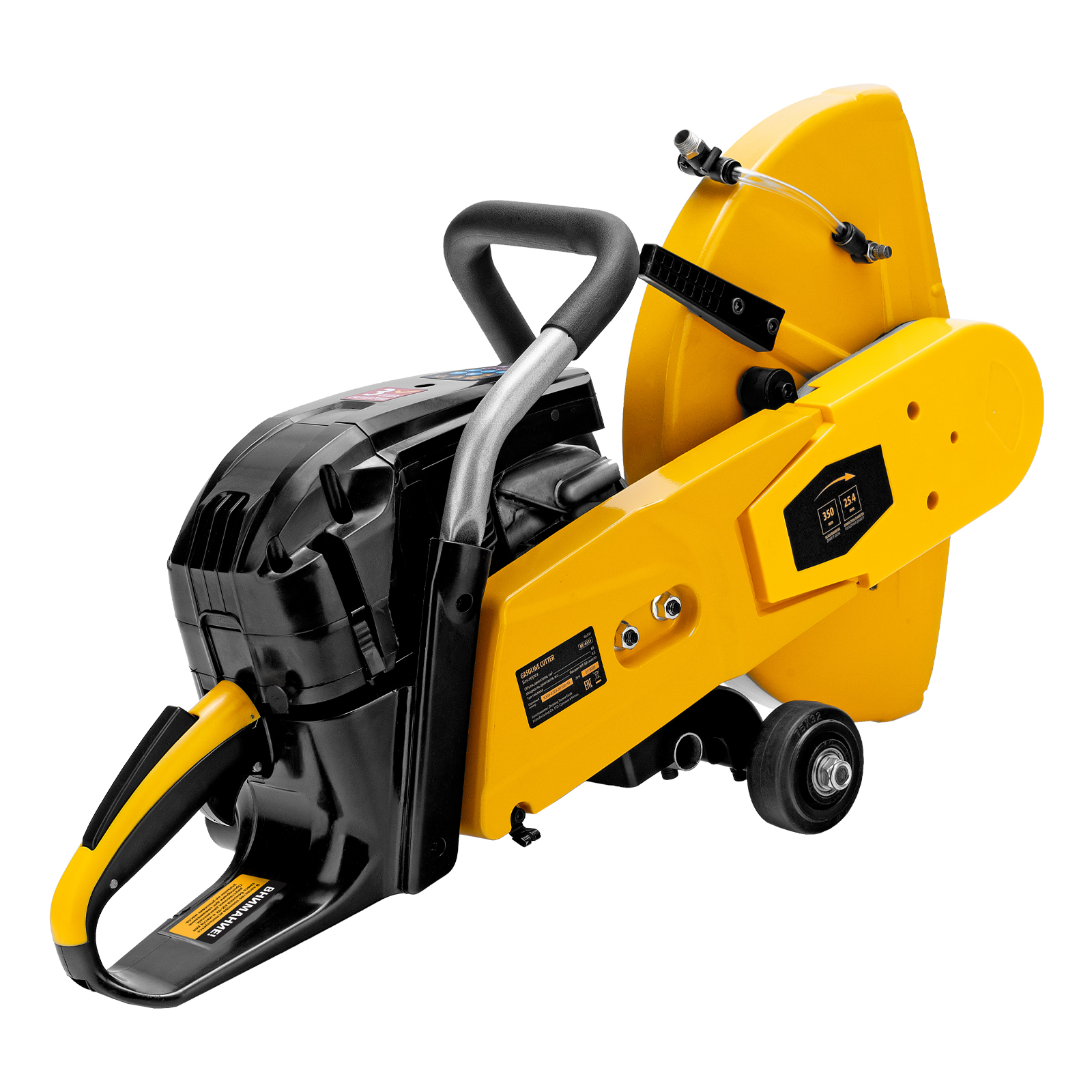 Бензорез оснащен универсальным штуцером для подачи воды. Использование водяного охлаждения позволяет уменьшить количество образующейся пыли и снизить нагрузку на двигатель.