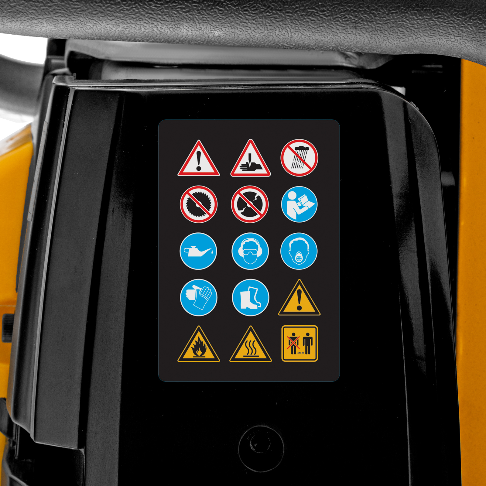 - Безопасность — режущий диск закрыт защитным кожухом, блокиратор курка газа исключает случайный запуск двигателя.