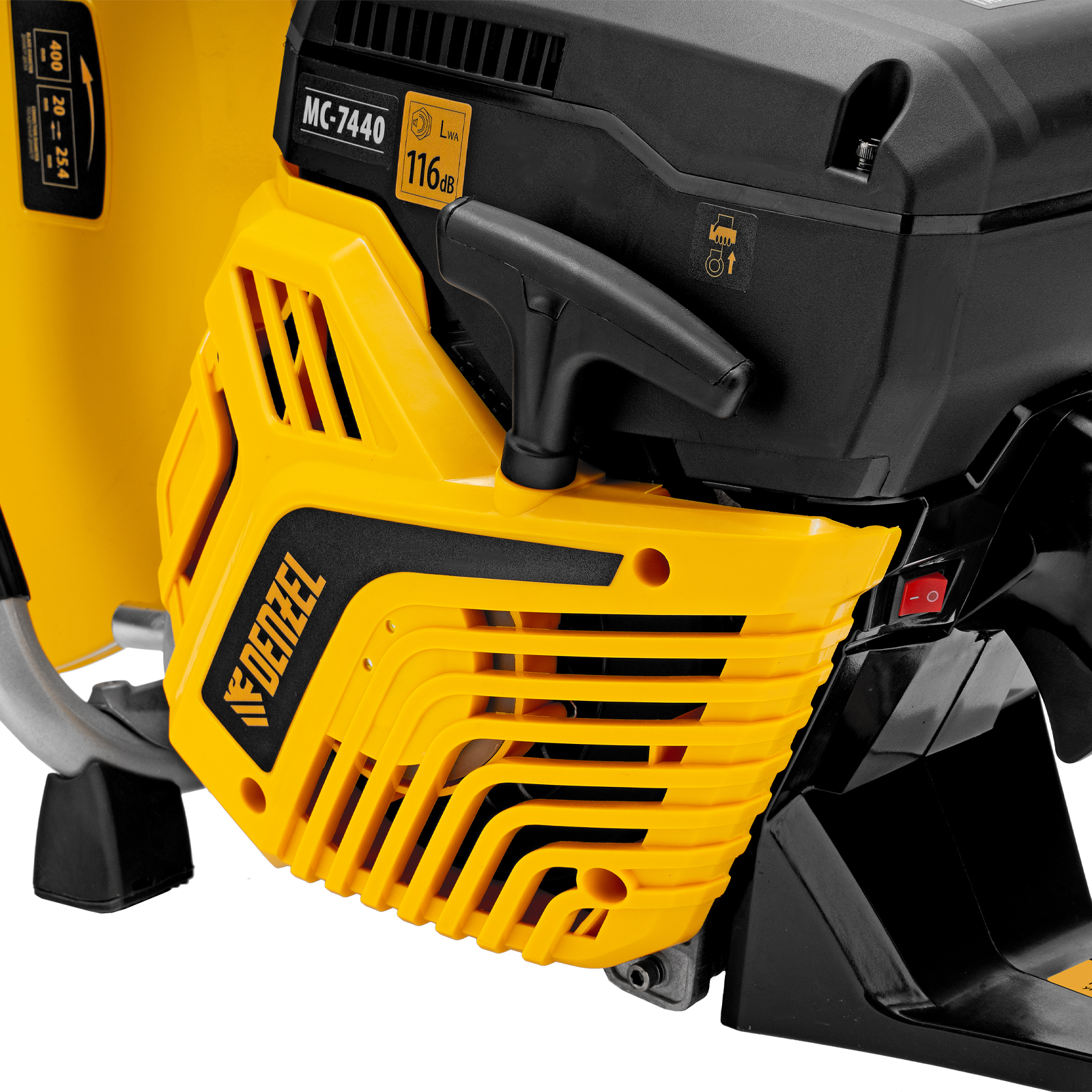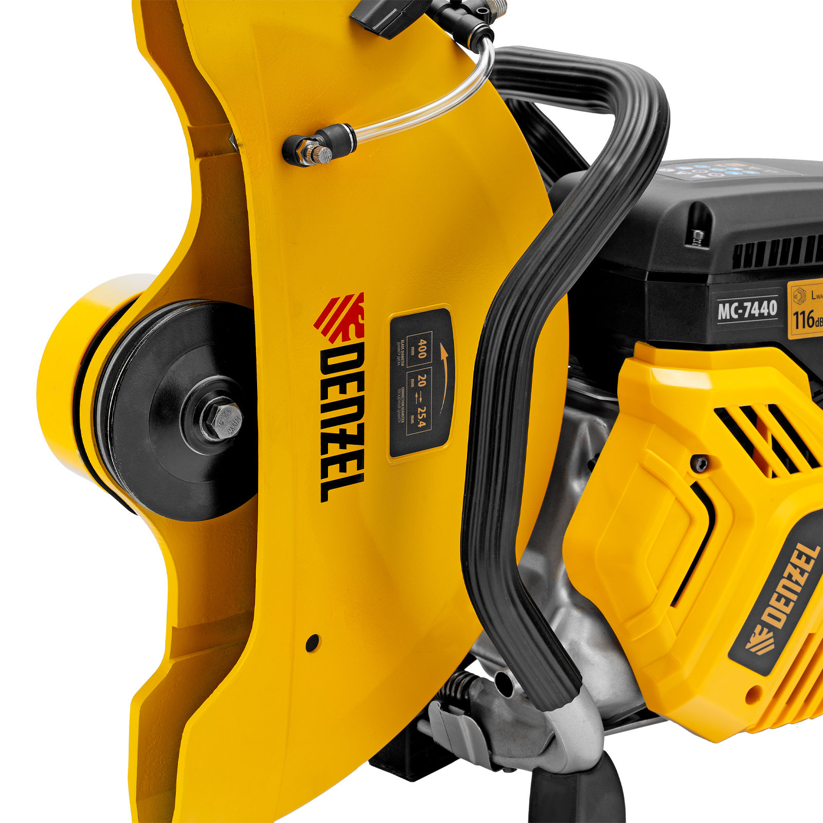 Бензорез Denzel MC-7440 66302 предназначен для работы с бетоном, асфальтом, чугуном, сталью и другими твердыми материалами. Оптимален для проведения демонтажных работ на строительной площадке, также может применяться во время спасательных операций. Для работы используются алмазные, абразивные и зубчатые диски диаметром 400 мм. Эффективное решение поставленных задач обеспечивает двигатель объемом 74 см3 и мощностью 4,8 л.с., для удобного выбора режущего диска имеется два посадочных диаметра: 20 и 25,4 мм.