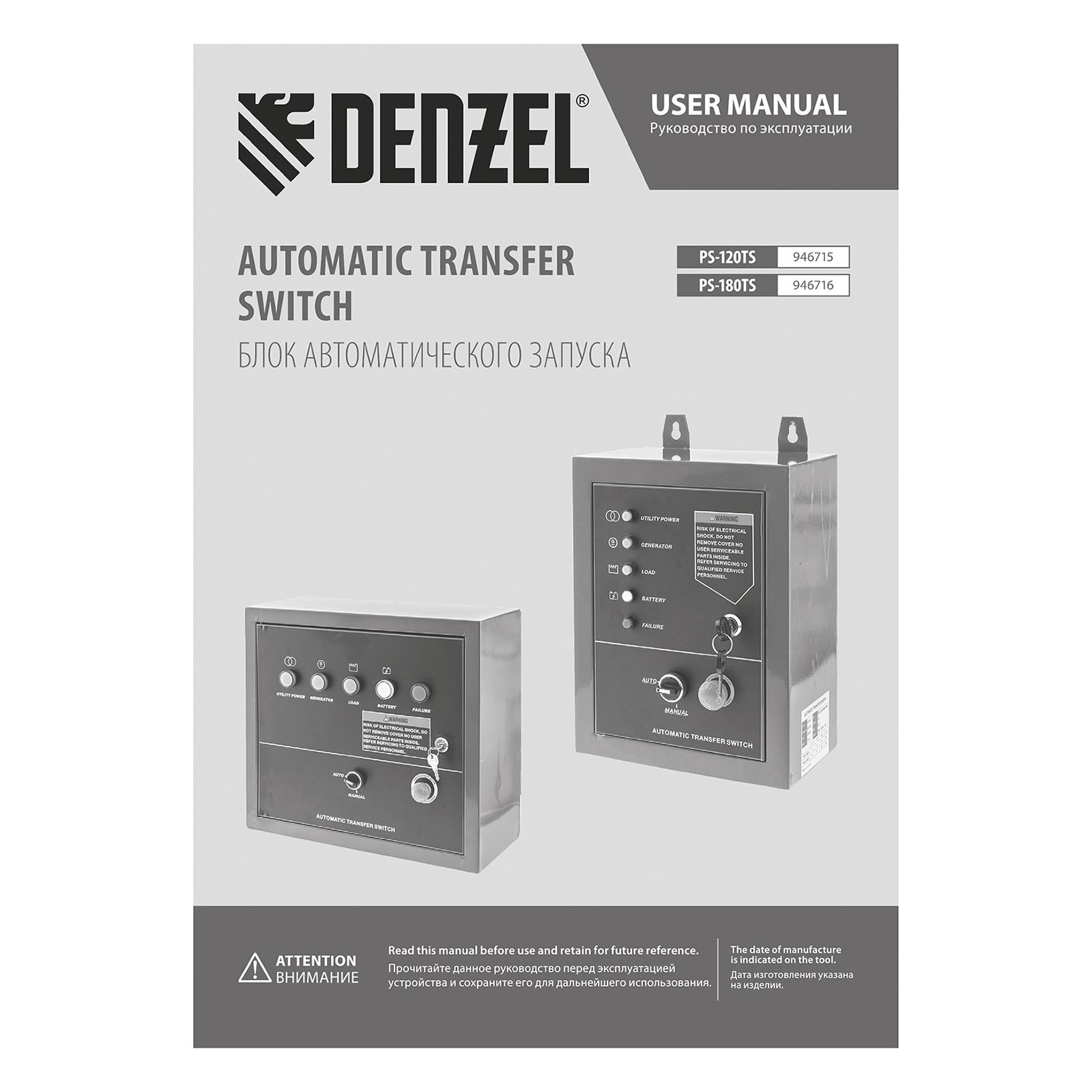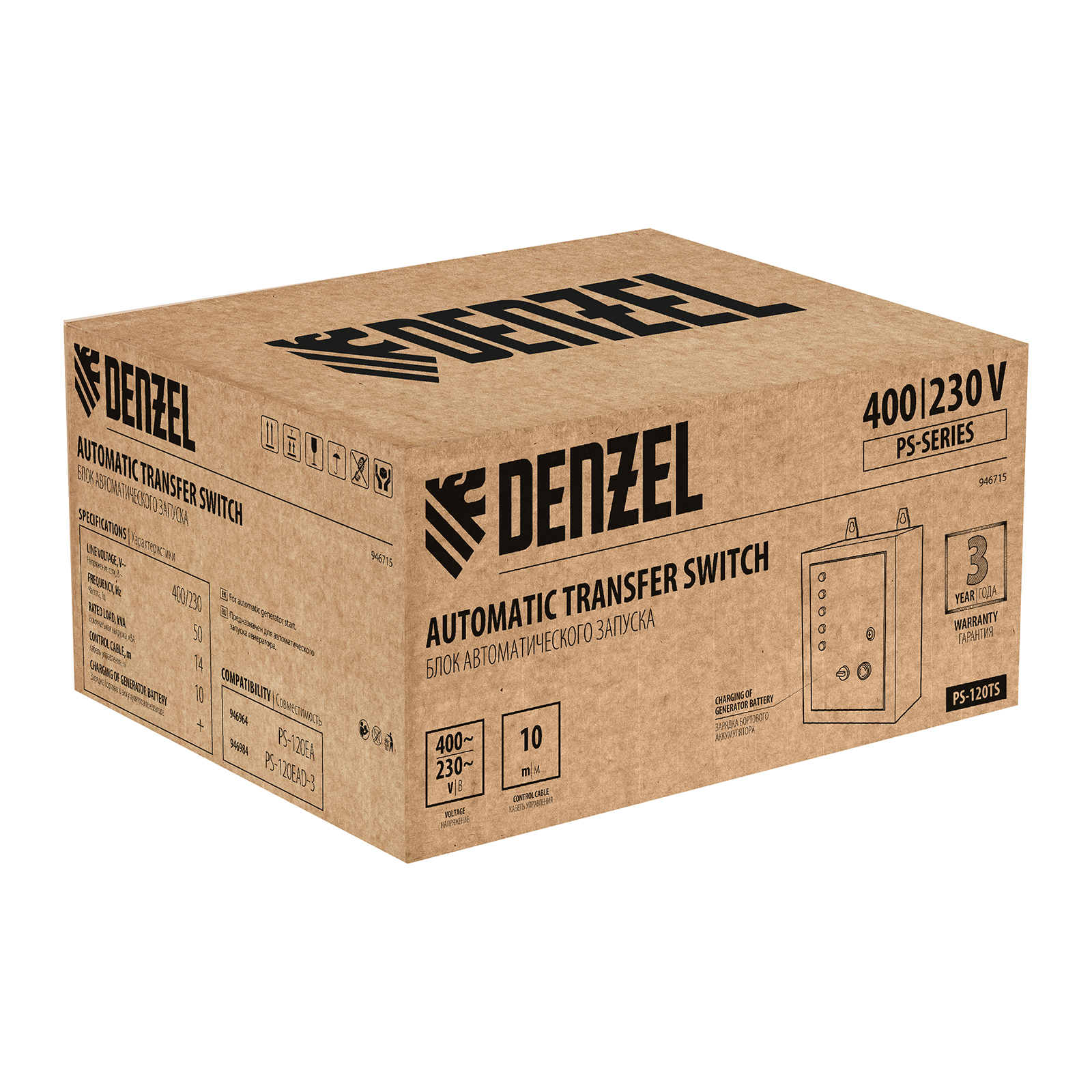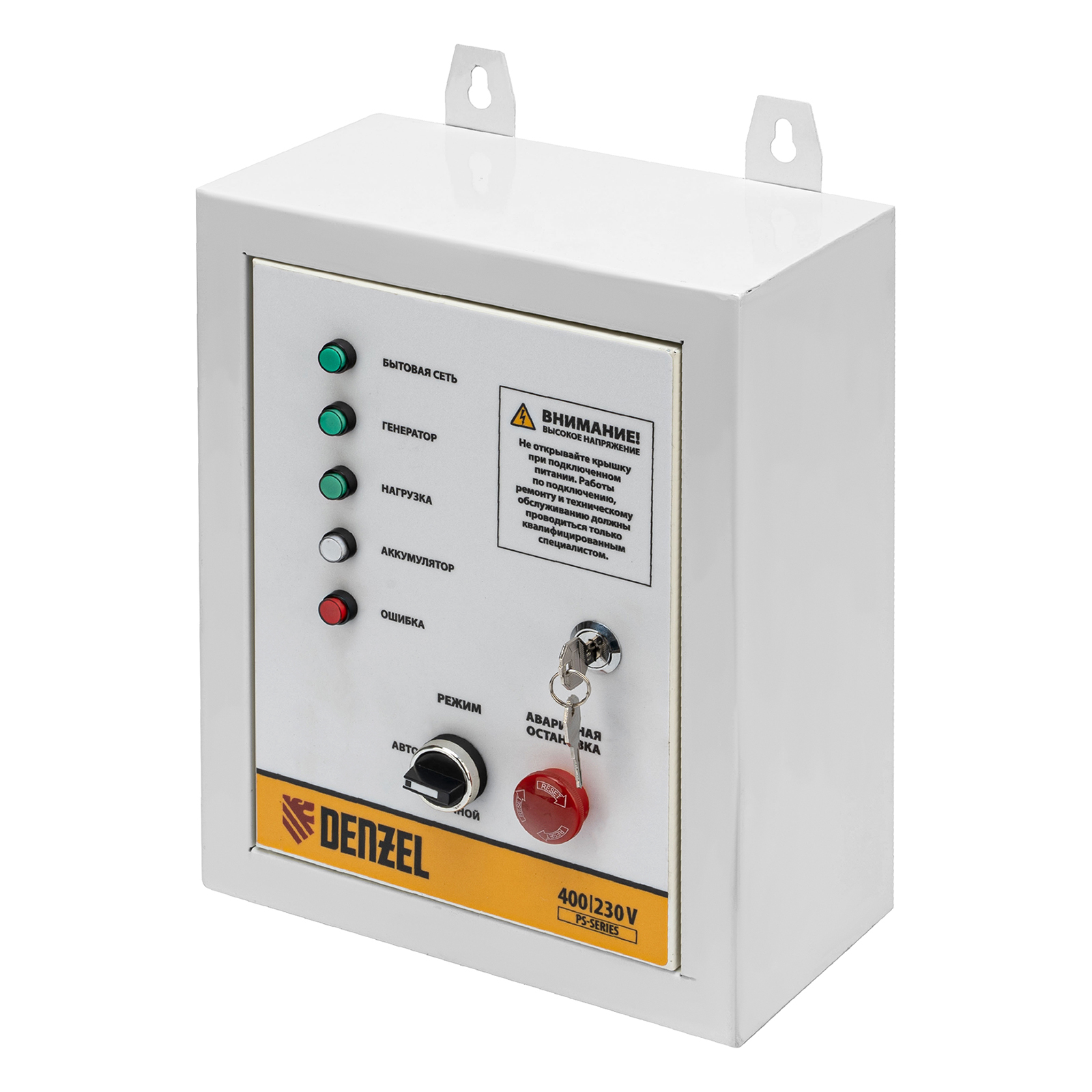 Блок автоматического запуска Denzel PS-120TS 946715 используется совместно с генератором PS-120EA или PS-120EAD-3. Позволяет создать систему автономного электроснабжения. Блок управления переключает питание на генератор при падении напряжения в стационарной сети, а при восстановлении электроснабжения останавливает генератор и переключает питание объекта обратно на сеть. Устройство рассчитано на нагрузку 14 кВА и будет полезно в загородном доме и на строительной площадке.