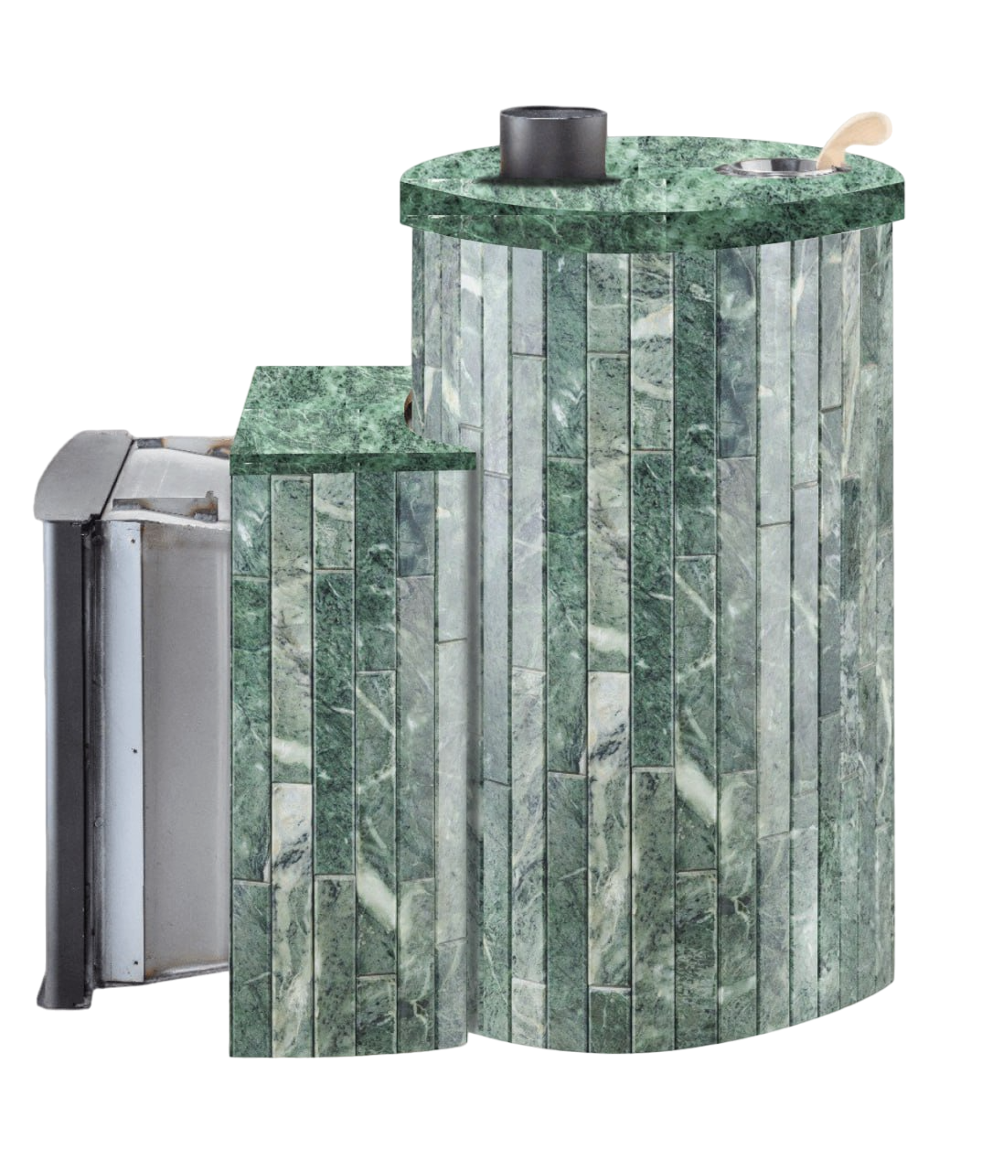 Теперь вы сможете перекрыть металлический тоннель, и банная печь в облицовке натуральным камнем будет смотреться ещё более стильно и роскошно.