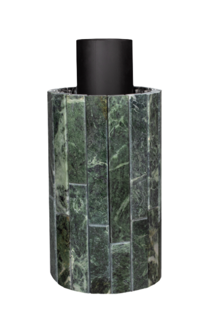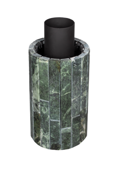 Представляет собой металлический каркас, установленный на одностенный дымоход диаметром 115мм, на который навешиваются ламели из натурального камня.