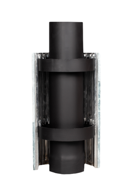 ➡ С фиксатором. Его можно смонтировать на уже существующую систему дымохода и придать комплекту завершённый облик. Для изготовления необходимо измерить высоту от открытой крышки конвекции на специальном дымоходе до потолка (с учетом «чистовой» отделки), оставив зазор 2-3 см для навешивания ламелей.