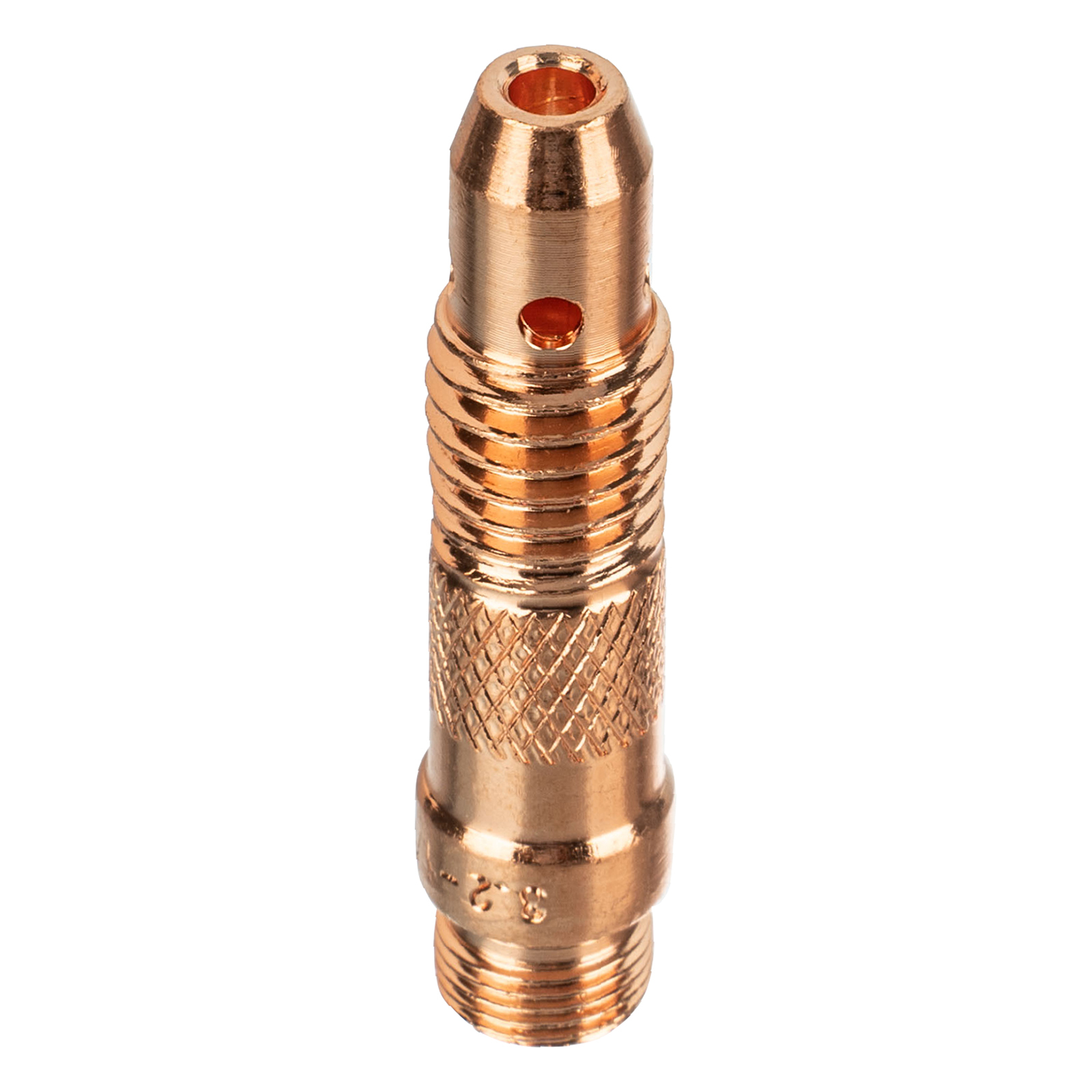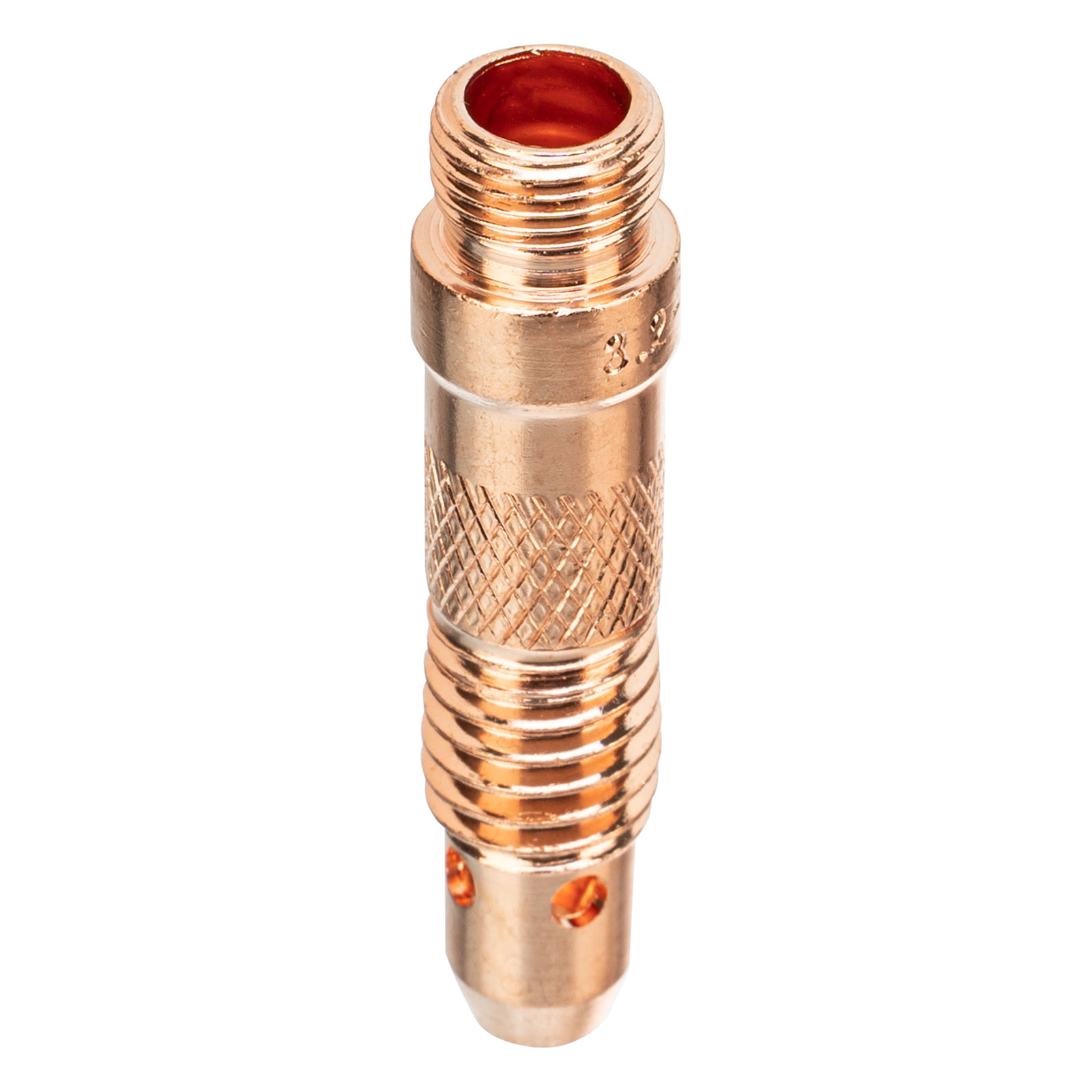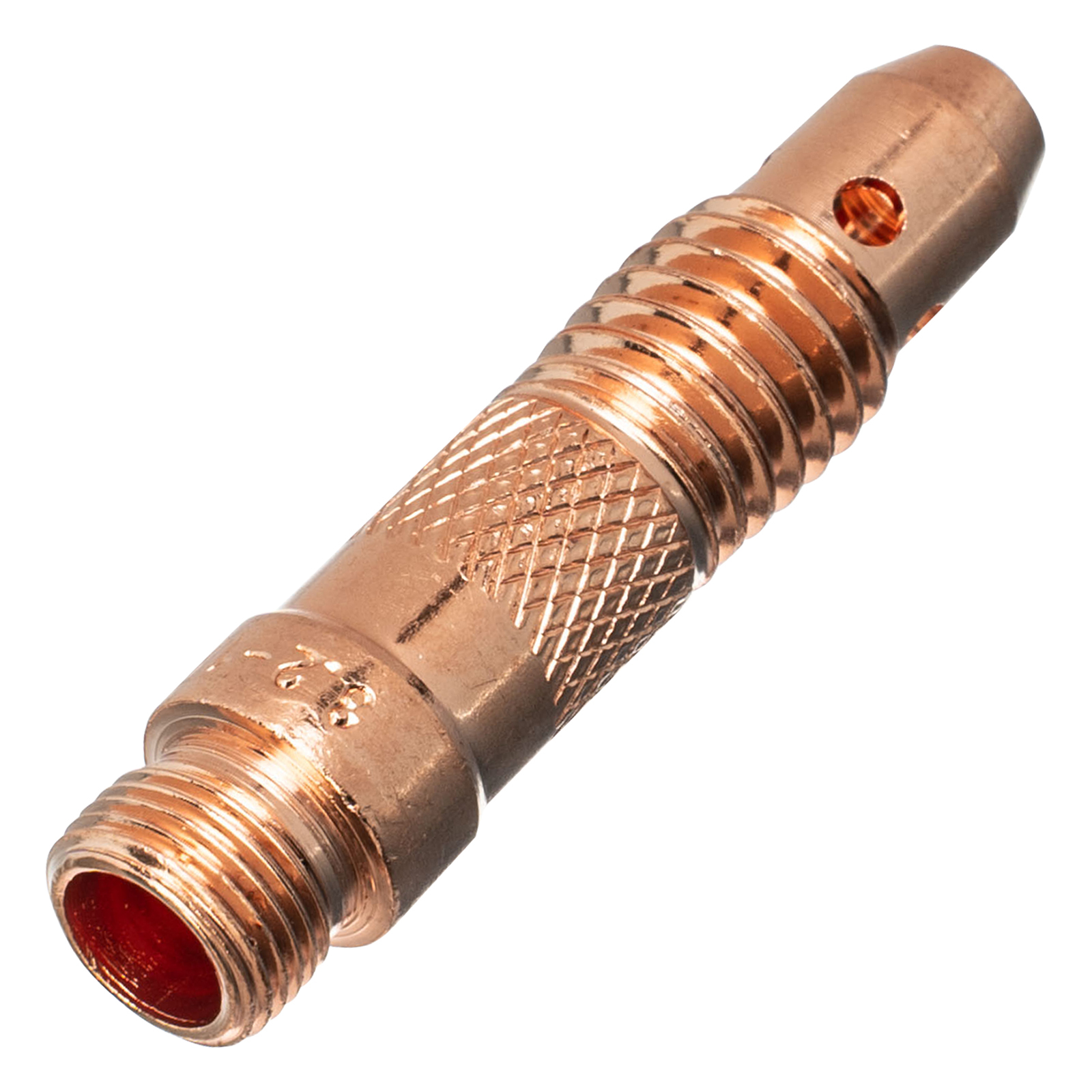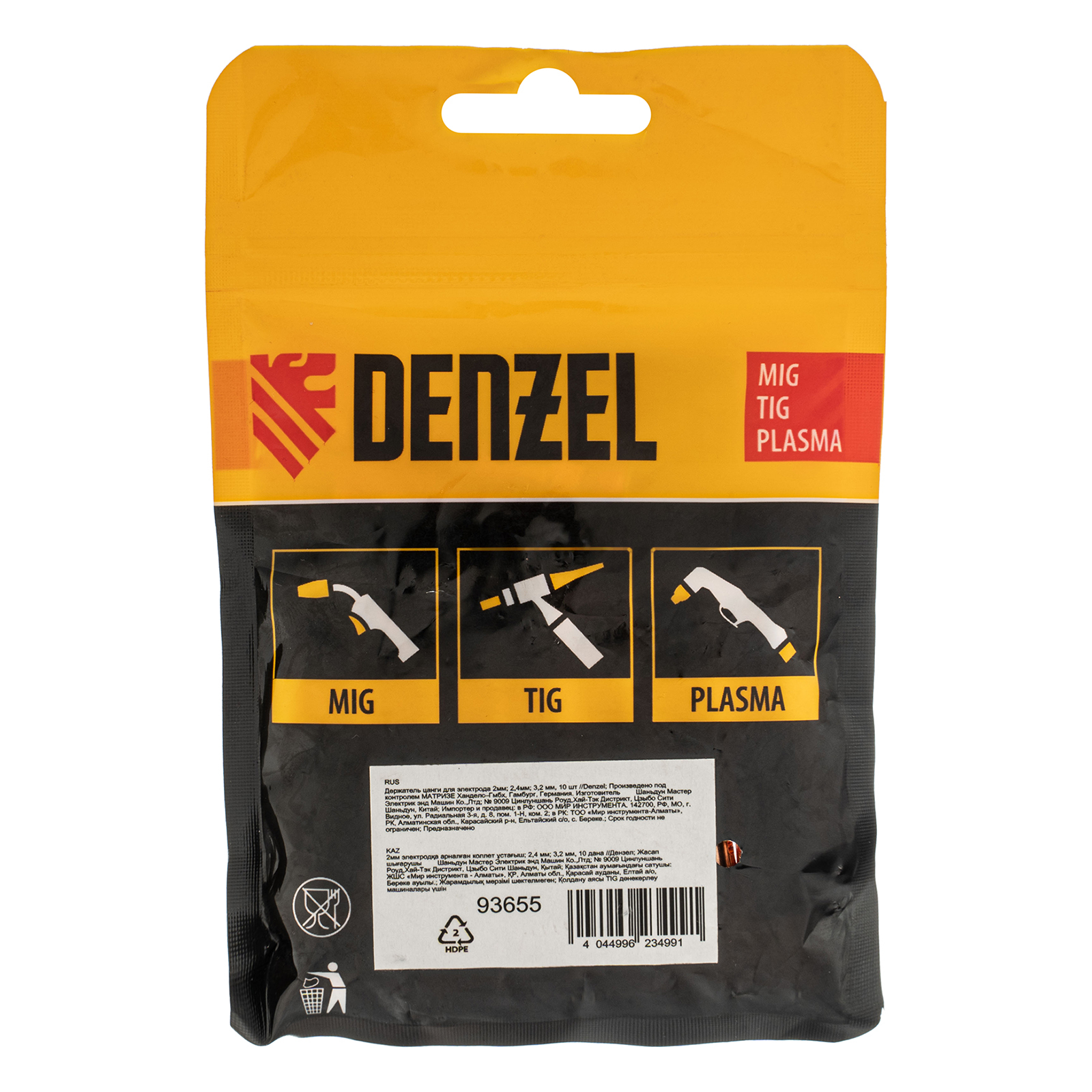 Держатель цанги Denzel 93655 входит в набор из 10 шт. и надежно фиксирует в сопле газовой горелки цангу с электродом диаметром 2, 2,4 и 3,2 мм. Используется для аргонодуговой сварки и совместим со сварочными горелками TIG 93643, 93644, а также может устанавливаться на модели других торговых марок с аналогичным посадочным разъемом.