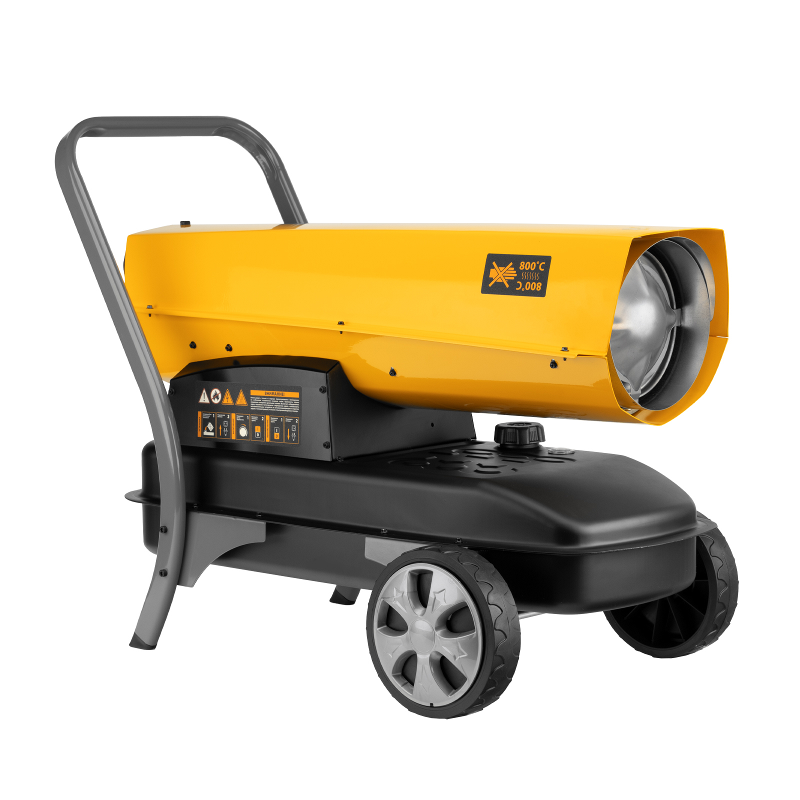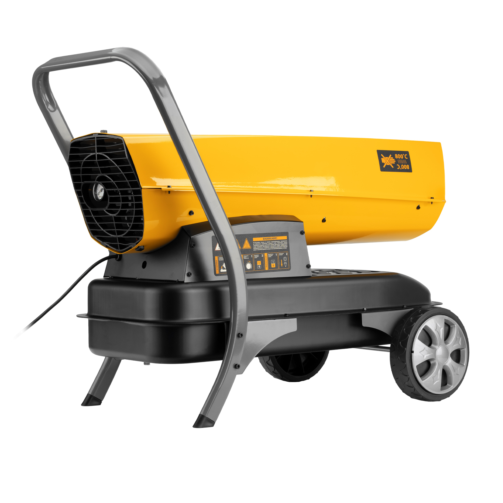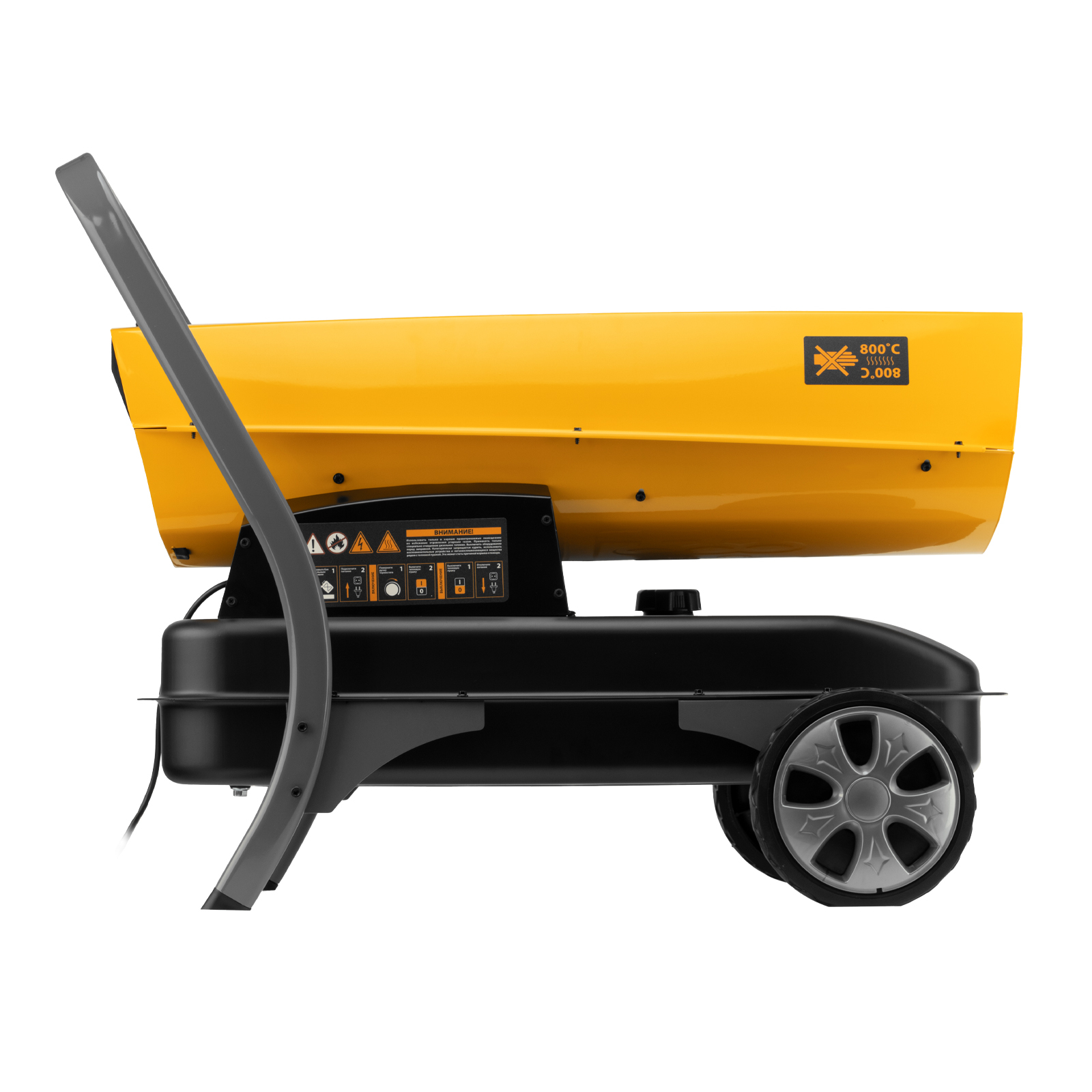 - Удобная транспортировка — пушка оснащена большими колесами и П-образной ручкой.