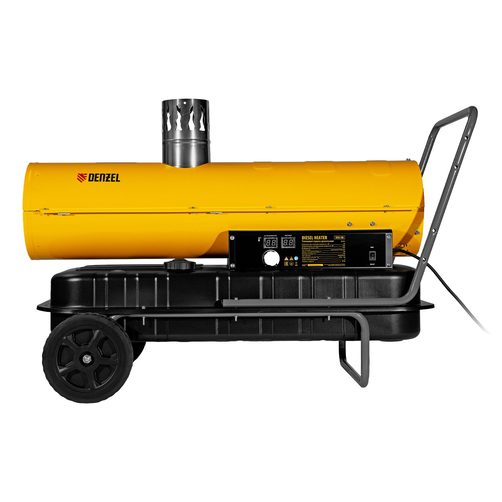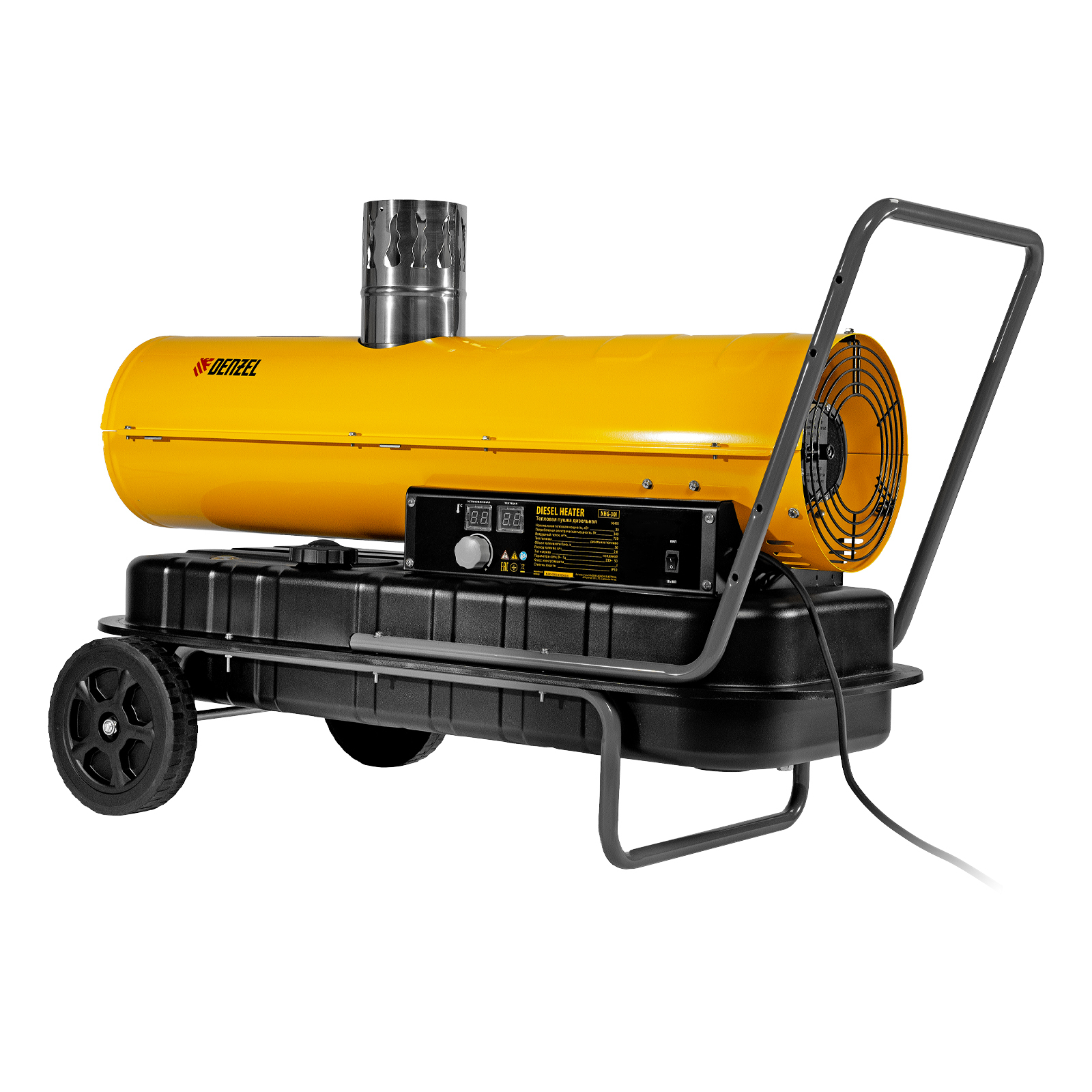 Дизельная тепловая пушка непрямого нагрева DENZEL NHG-30i 96492 с цифровым термостатом обладает тепловой мощностью 30 кВт и генерирует поток теплого воздуха 750 м3/ч. Предназначена для обогрева шатров, палаток, складов, а также технических помещений, ангаров, теплиц и строительных объектов. В работе пушки используется схема непрямого нагрева: при помощи отводного патрубка продукты горения можно полностью вывести за пределы помещения. Такое решение позволяет использовать устройство в присутствии людей.