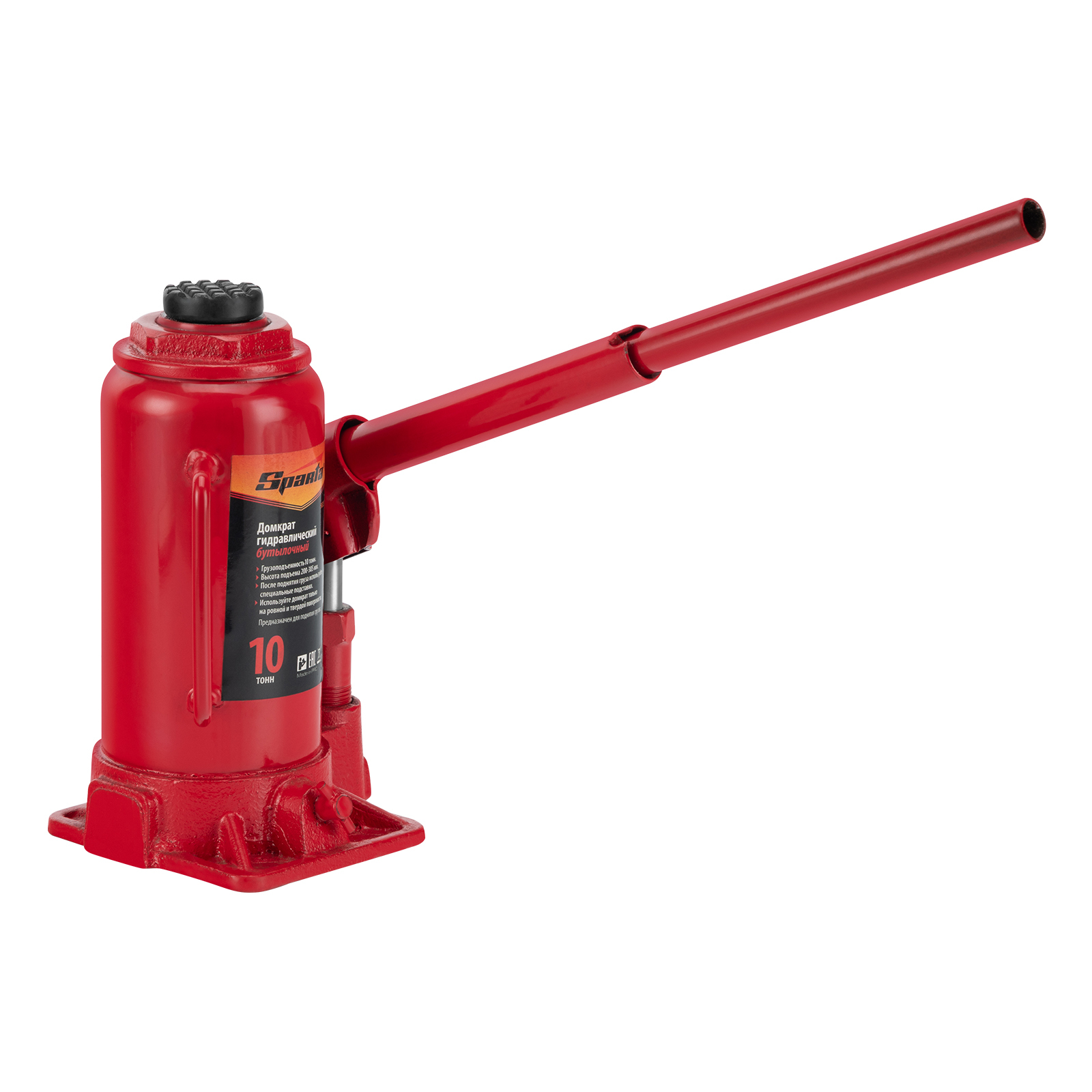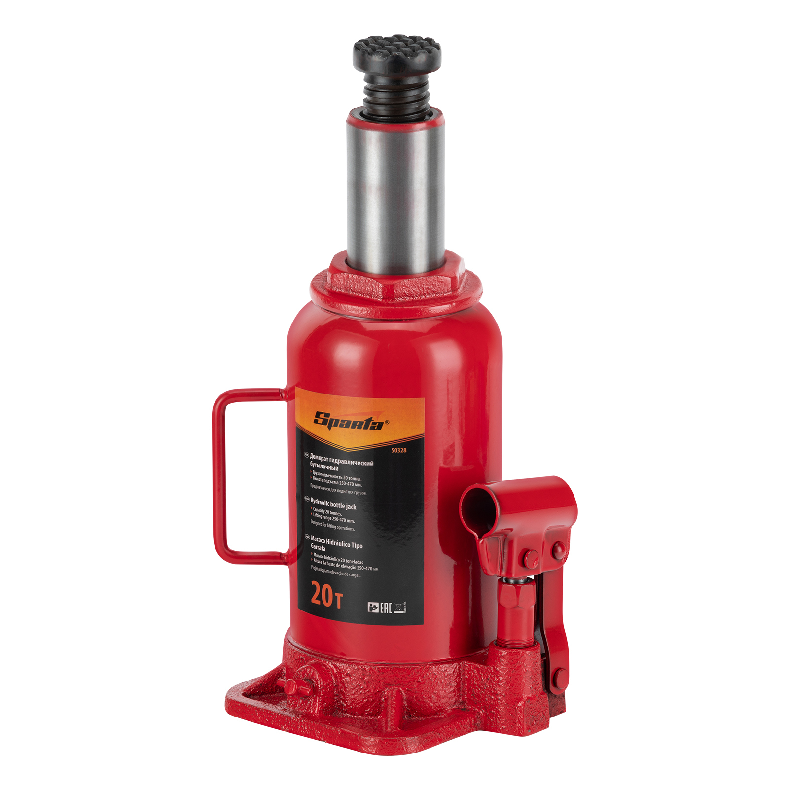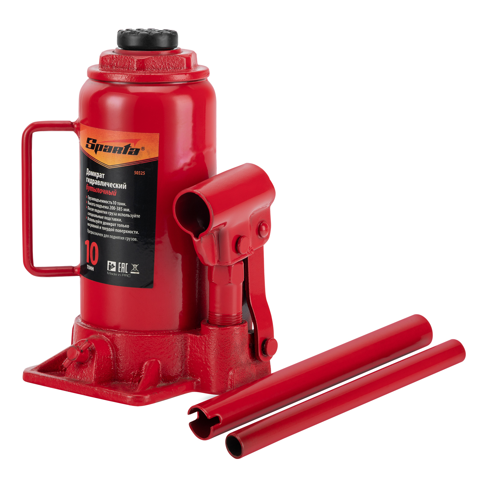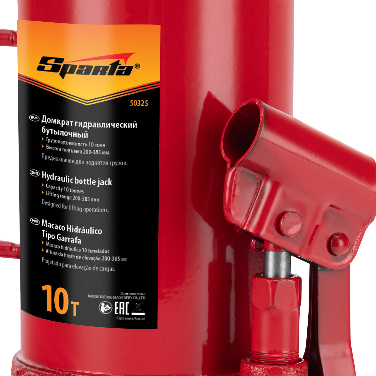 Гидравлический бутылочный домкрат Sparta 50325 рассчитан на подъем грузов весом до 10 т на высоту от 200 до 385 мм. Он пригодится как автолюбителям в гараже, так и профессиональным мастерам в автосервисах. Домкрат обеспечивает плавный подъем груза без особых усилий со стороны пользователя.