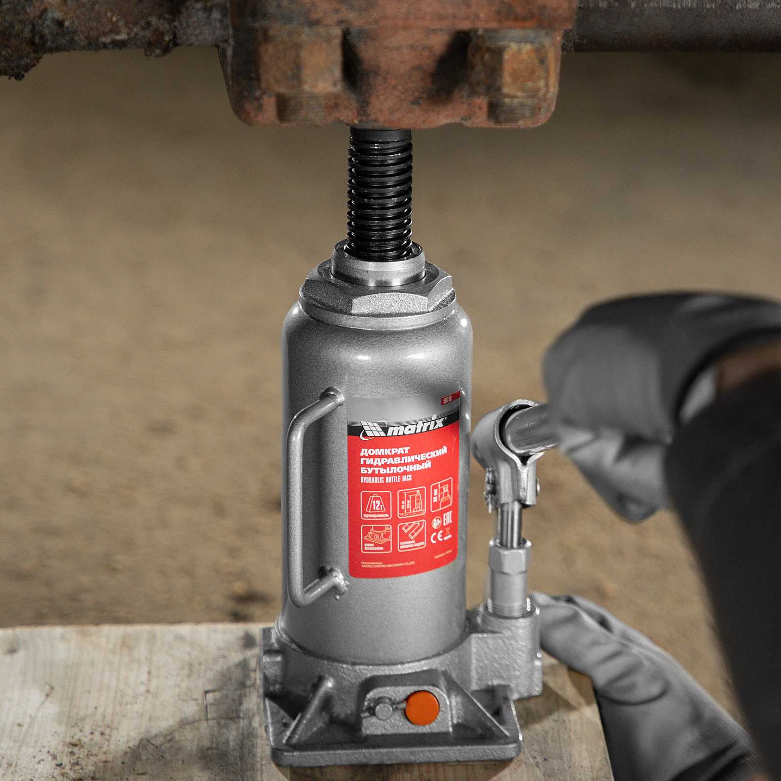 Гидравлический бутылочный домкрат Matrix 50768 предназначен для быстрого поднятия грузов массой до 12 т на высоту 230-465 мм. Будет полезен автолюбителям и мастерам СТО в качестве полупрофессионального инструмента. Встроенный магнитный уловитель металлической стружки защищает резиновые уплотнители от повреждений.