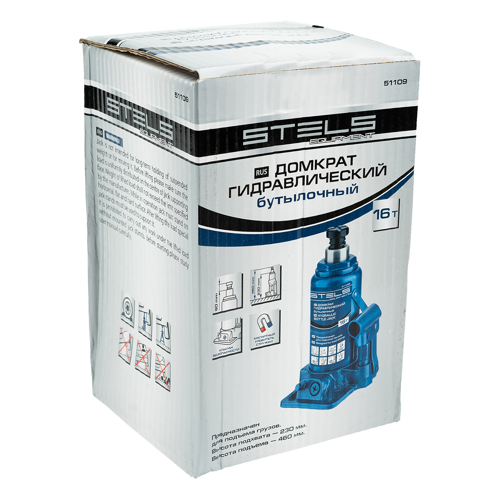 Гидравлический бутылочный домкрат Stels 51109 предназначен для поднятия грузов массой до 16 т на высоту с 230 до 460 мм. Позволяет установить жесткую опору под груз для последующего проведения ремонта. Будет полезен на станции техобслуживания, пригодится во время проведения ремонтно-строительных работ.