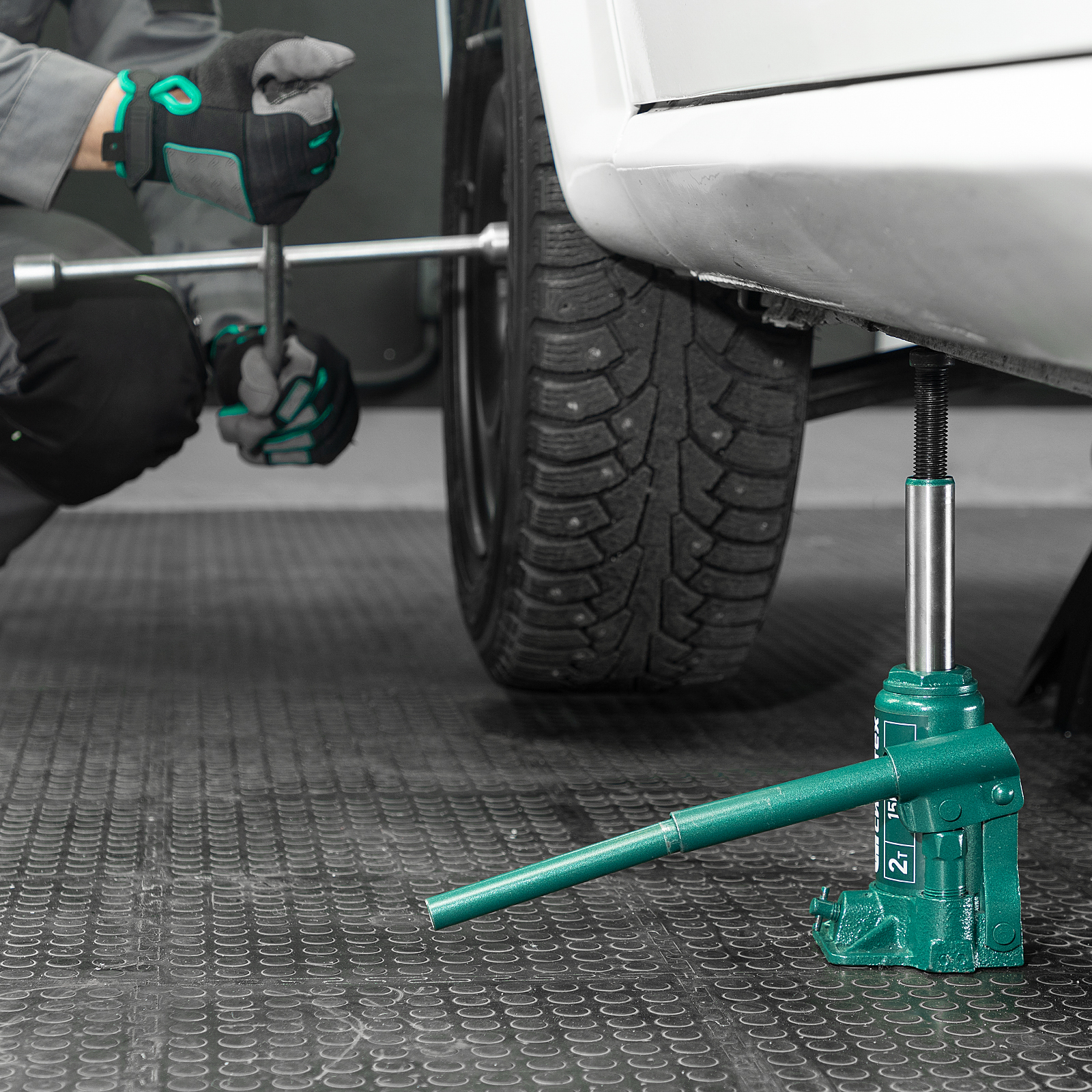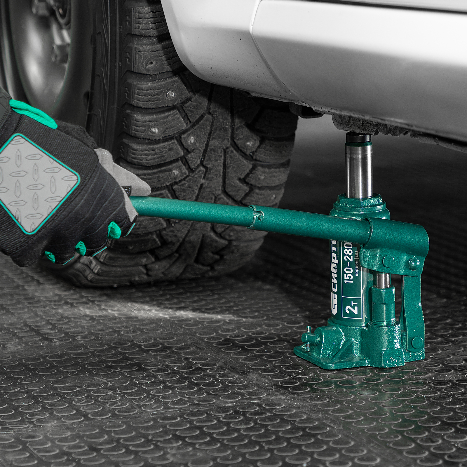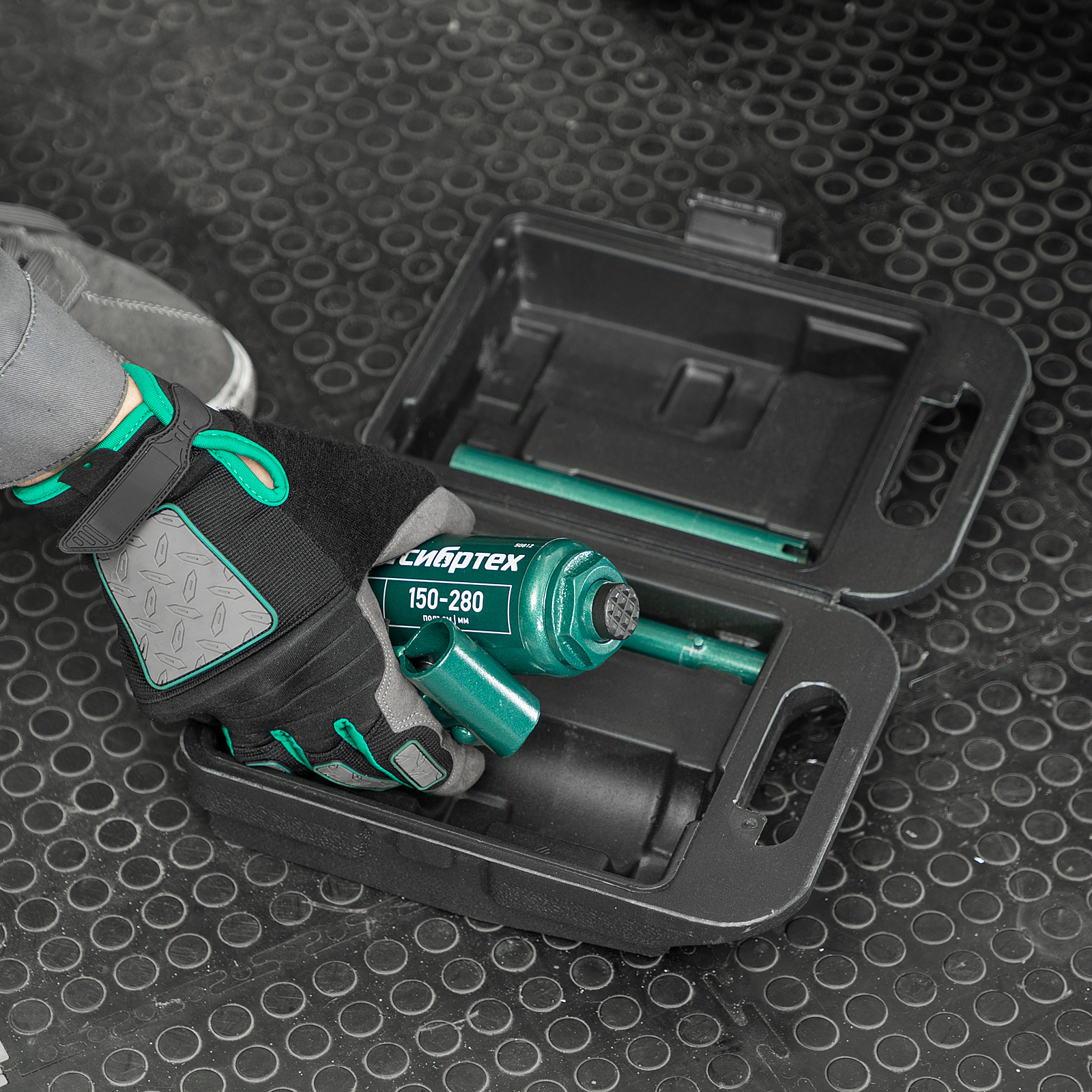 - Удобное хранение и транспортировка — домкрат весит всего 1,9 кг и поставляется в прочном пластиковом кейсе с рукояткой.