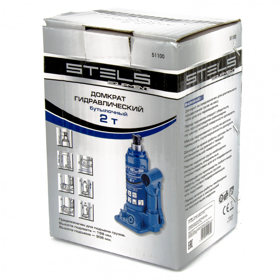 Гидравлический бутылочный домкрат Stels 51100 предназначен для поднятия грузов массой до 2 т на высоту со 158 до 308 мм. Позволяет установить жесткую опору под груз для последующего проведения ремонта. Будет полезен на станции техобслуживания, подойдет также для самостоятельного обслуживания автомобиля. Пригодится во время проведения ремонтно-строительных работ.