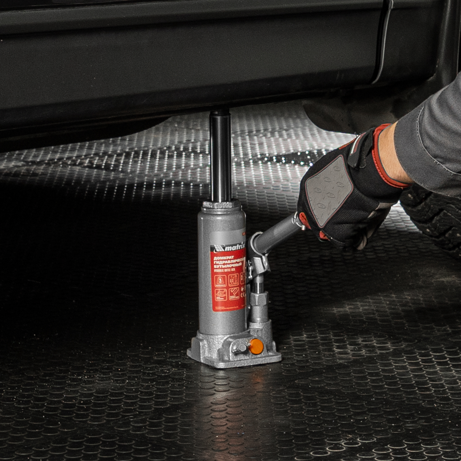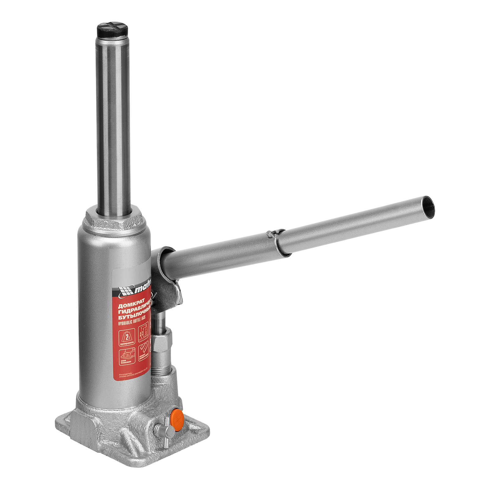- Защита от перегрузки — домкрат оснащен клапаном безопасности, который не допускает поднятия груза массой более 2000 кг.