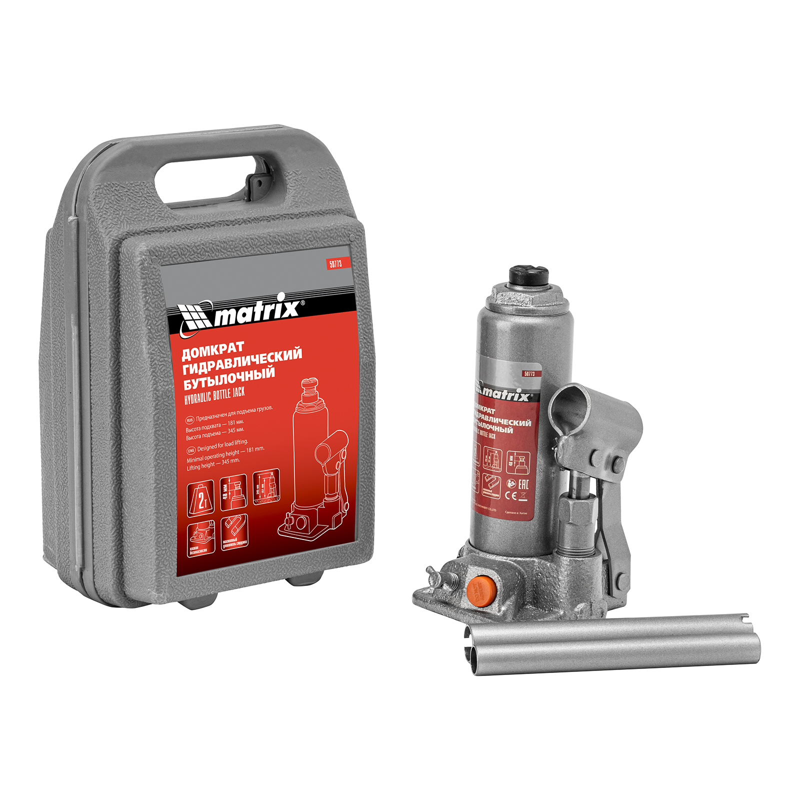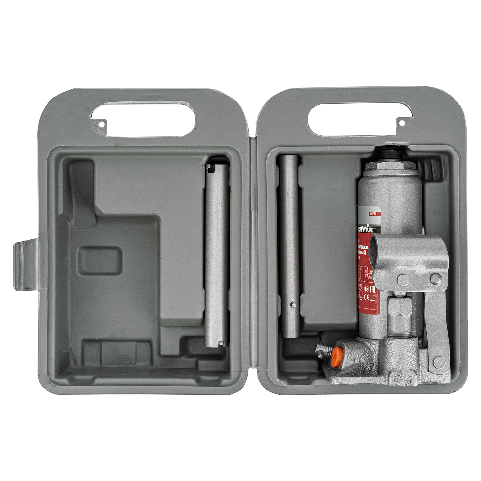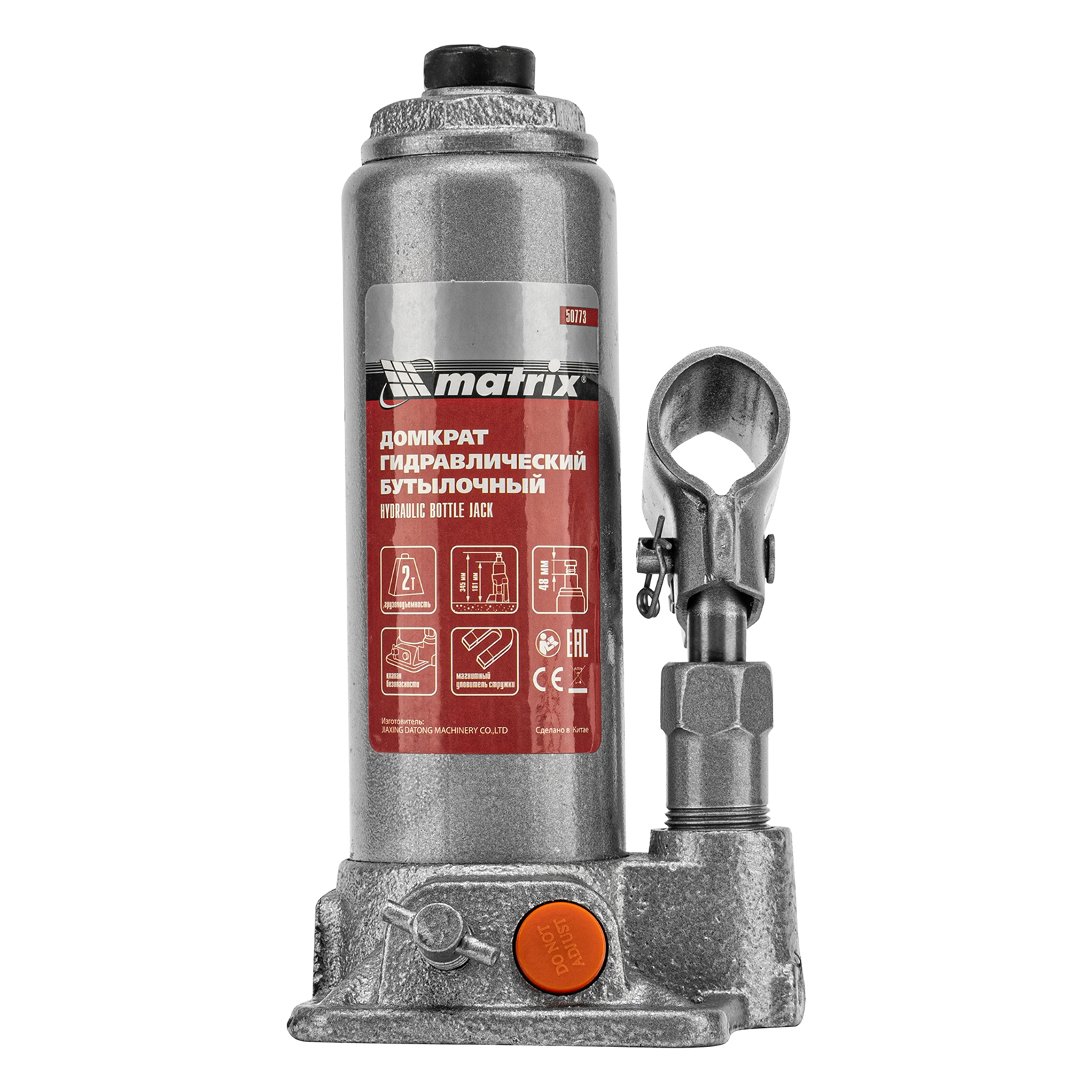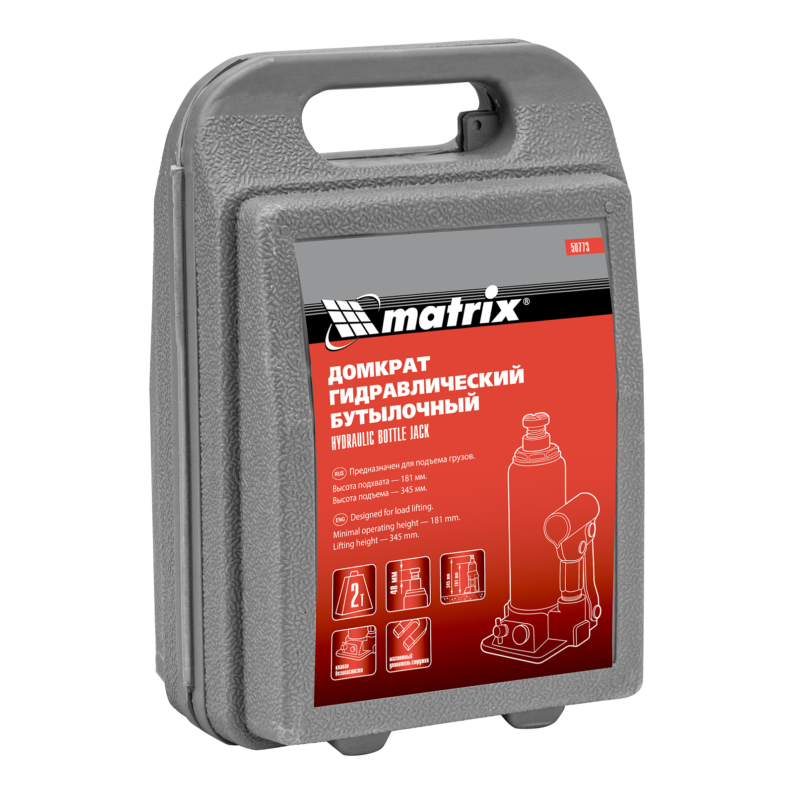 Гидравлический бутылочный домкрат Matrix 50773 позволяет быстро поднимать грузы массой до 2 т на высоту 181-345 мм. Встроенный магнитный уловитель собирает металлическую стружку, предотвращая преждевременный износ резиновых уплотнителей. Домкрат пригодится для полупрофессионального применения.
