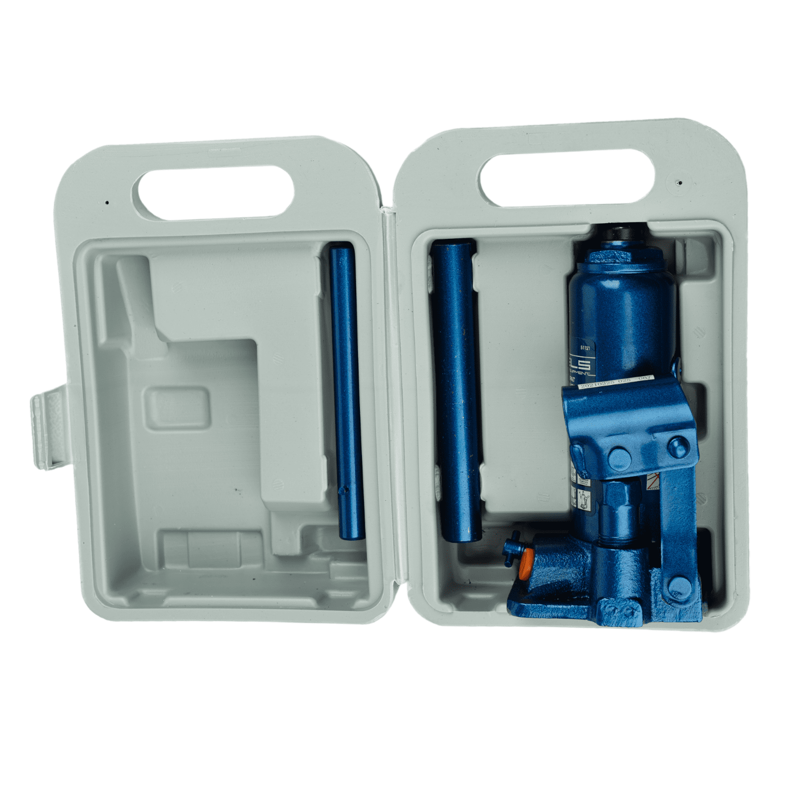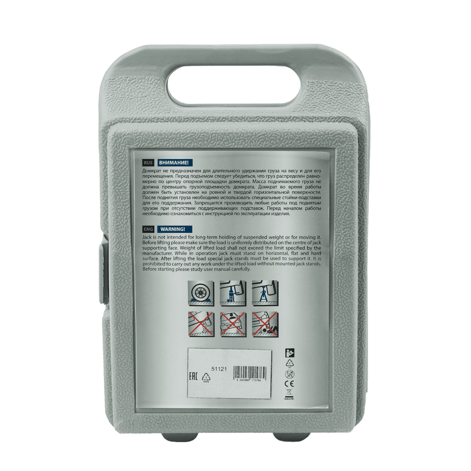 - Удобное хранение и транспортировка — домкрат поставляется в прочном пластиковом кейсе.