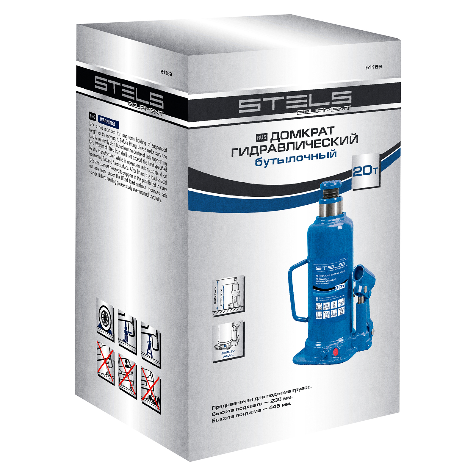 Гидравлический бутылочный домкрат Stels 51169 применяется для быстрого поднятия грузов весом до 20 т на высоту 235-445 мм. Оптимален для автомобилей с большим клиренсом. Домкрат будет полезен автолюбителям и профессионалам для ремонта транспортного средства.