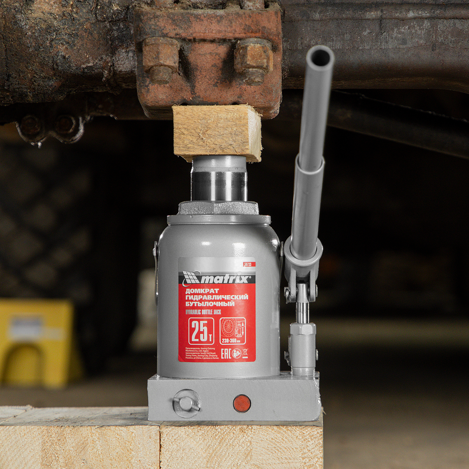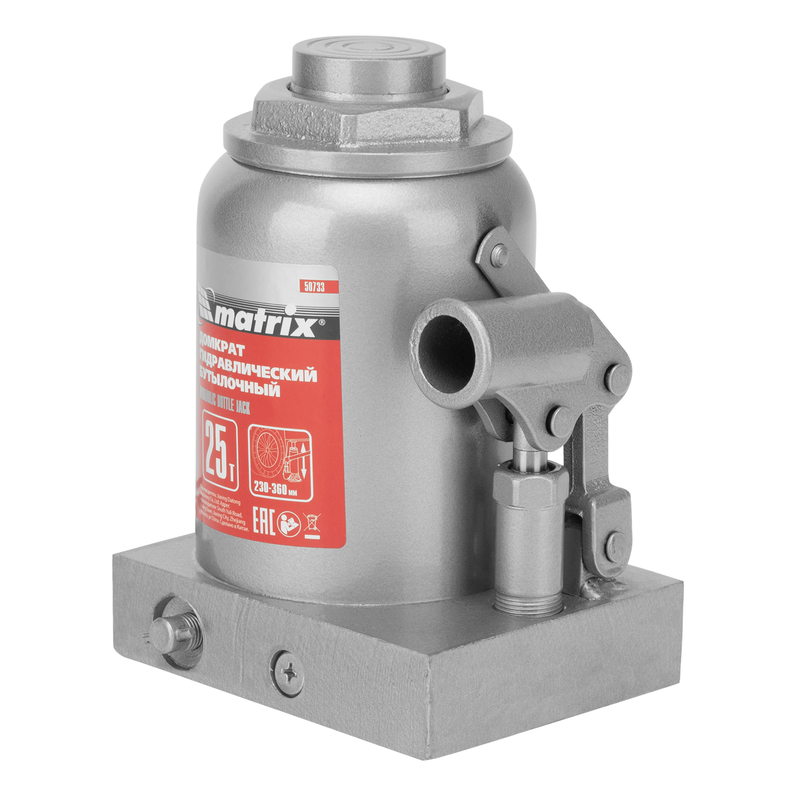 Домкрат гидравлический бутылочный Matrix 50733 используется для поднятия грузов массой до 25 т на высоту 230-360 мм. Подходит для автомобилей с высоким клиренсом. Домкрат будет полезен автолюбителям в гараже и дороге, а также сотрудникам СТО.