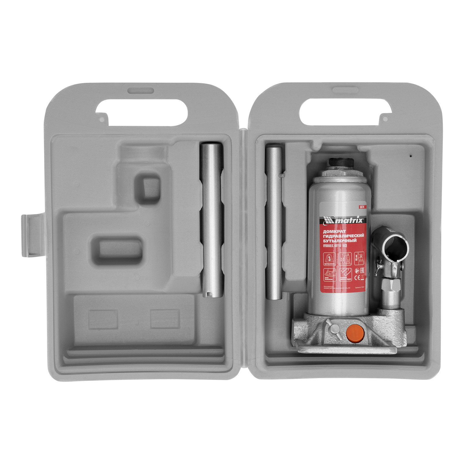 - Удобная транспортировка — домкрат комплектуется прочным пластиковым кейсом.