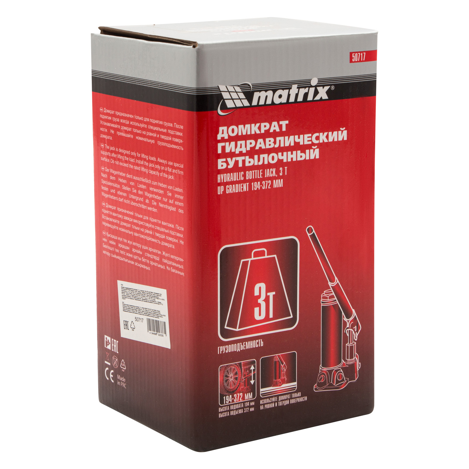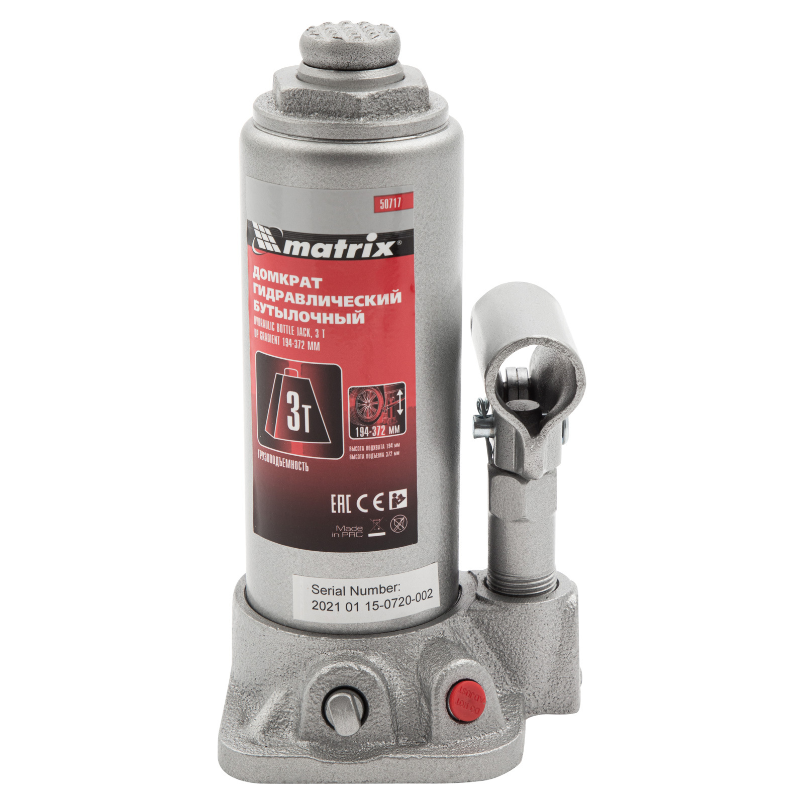 Домкрат гидравлический бутылочный Matrix 50717 используется для поднятия грузов массой до 3 т на высоту 194-372 мм. Подходит для автомобилей с высоким клиренсом. Домкрат будет полезен автолюбителям в гараже и дороге, а также сотрудникам СТО.