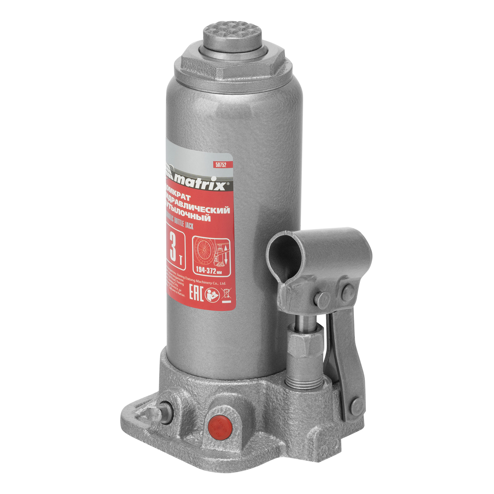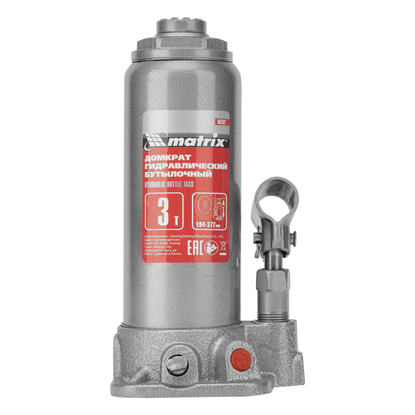 Домкрат гидравлический бутылочный Matrix 50752 предназначен для подъема грузов массой до 3 т на высоту от 194 до 372 мм. Оптимален для машин с большим клиренсом. Будет полезен автолюбителям при проведении технического обслуживания и ремонте авто в дороге или в гараже. Также домкрат подходит для полупрофессионального применения на станциях ТО.