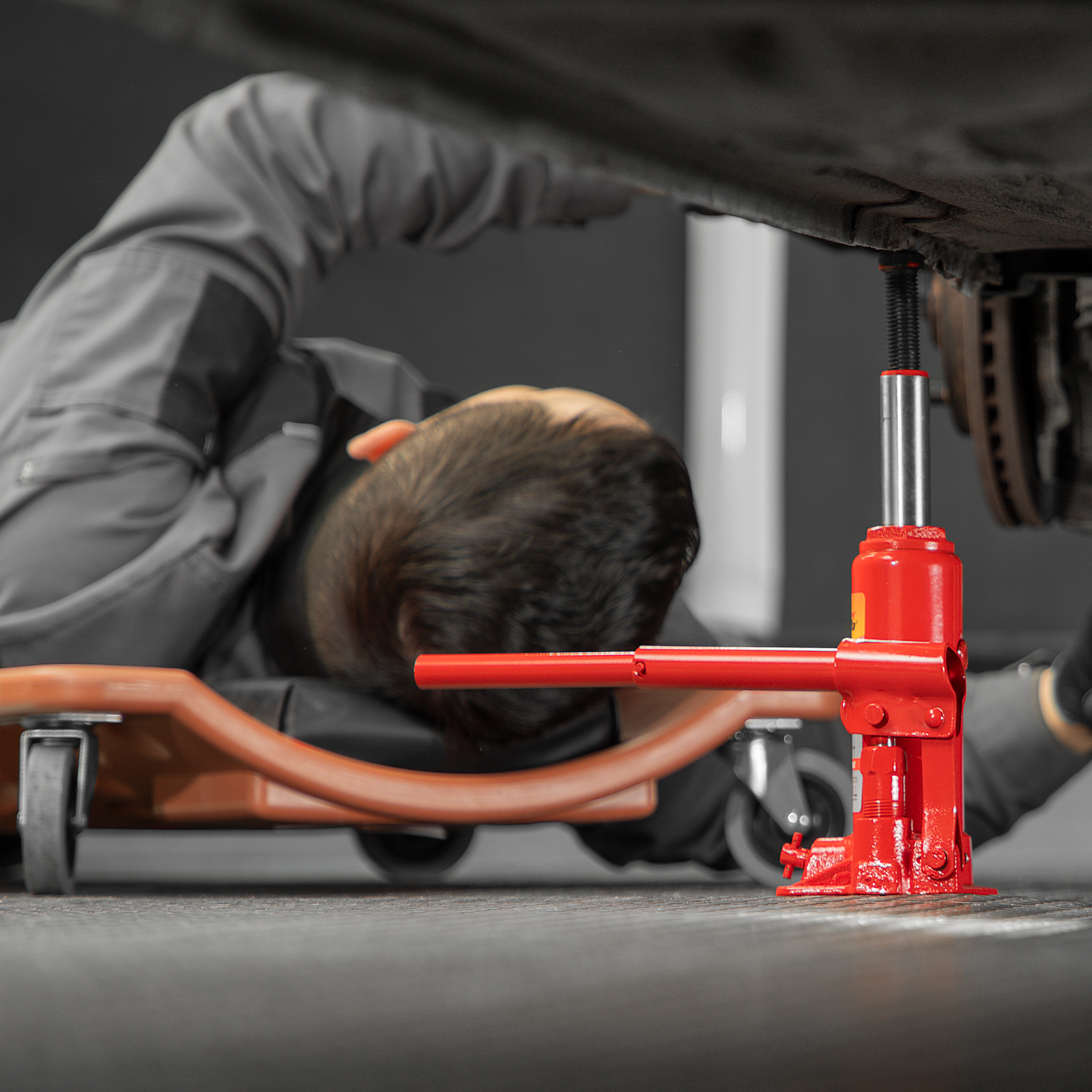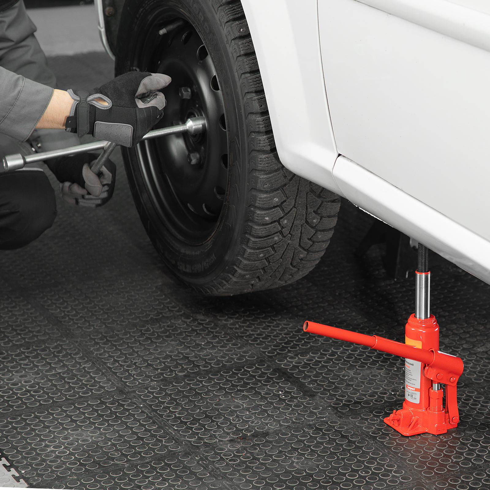 - Удобное хранение и транспортировка — домкрат весит всего 2,4 кг, а благодаря съемному рычагу не занимает много места.
