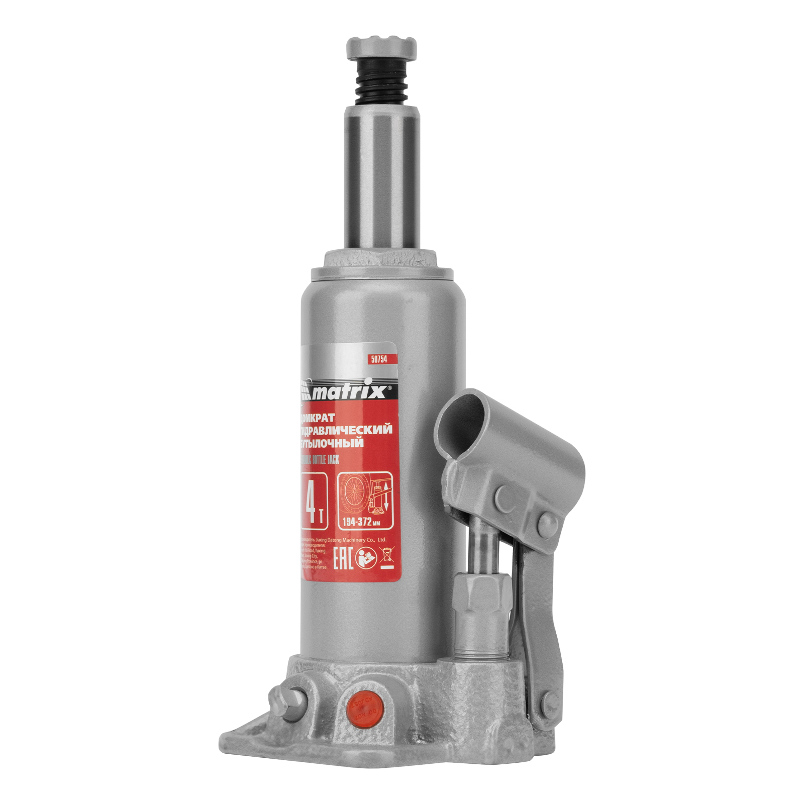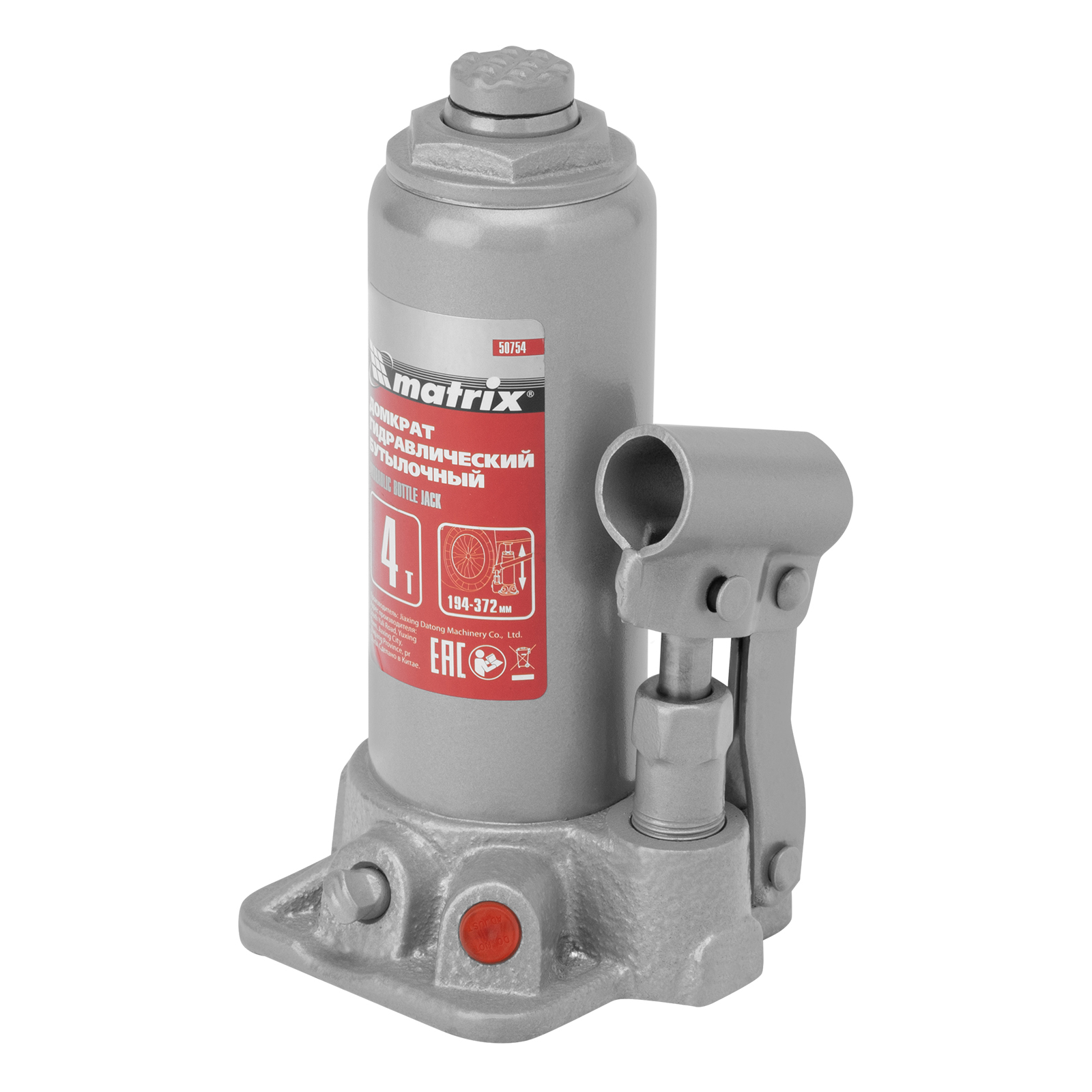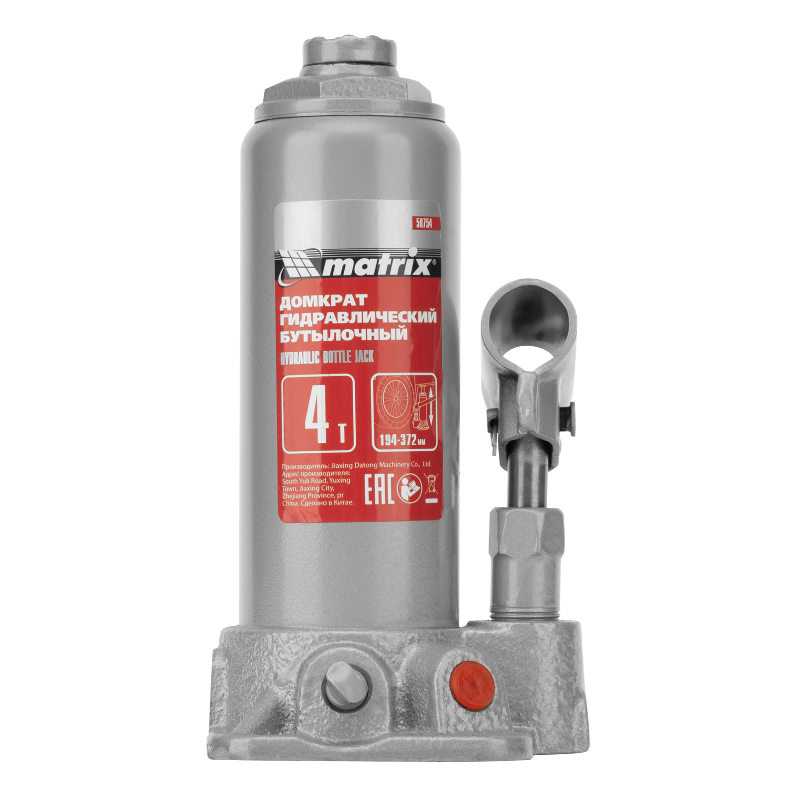 Домкрат гидравлический бутылочный Matrix 50754 предназначен для подъема грузов массой до 4 т на высоту от 194 до 372 мм. Оптимален для машин с большим клиренсом. Будет полезен автолюбителям при проведении технического обслуживания и ремонте авто в дороге или в гараже. Также домкрат подходит для полупрофессионального применения на станциях ТО.