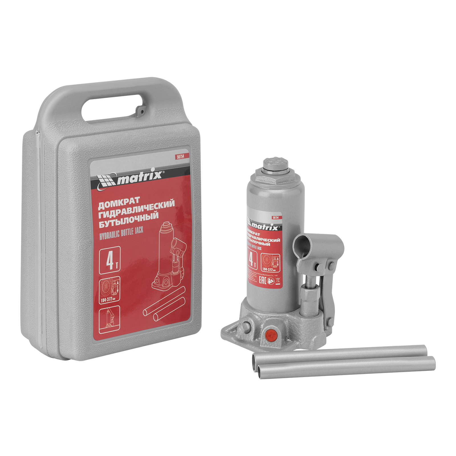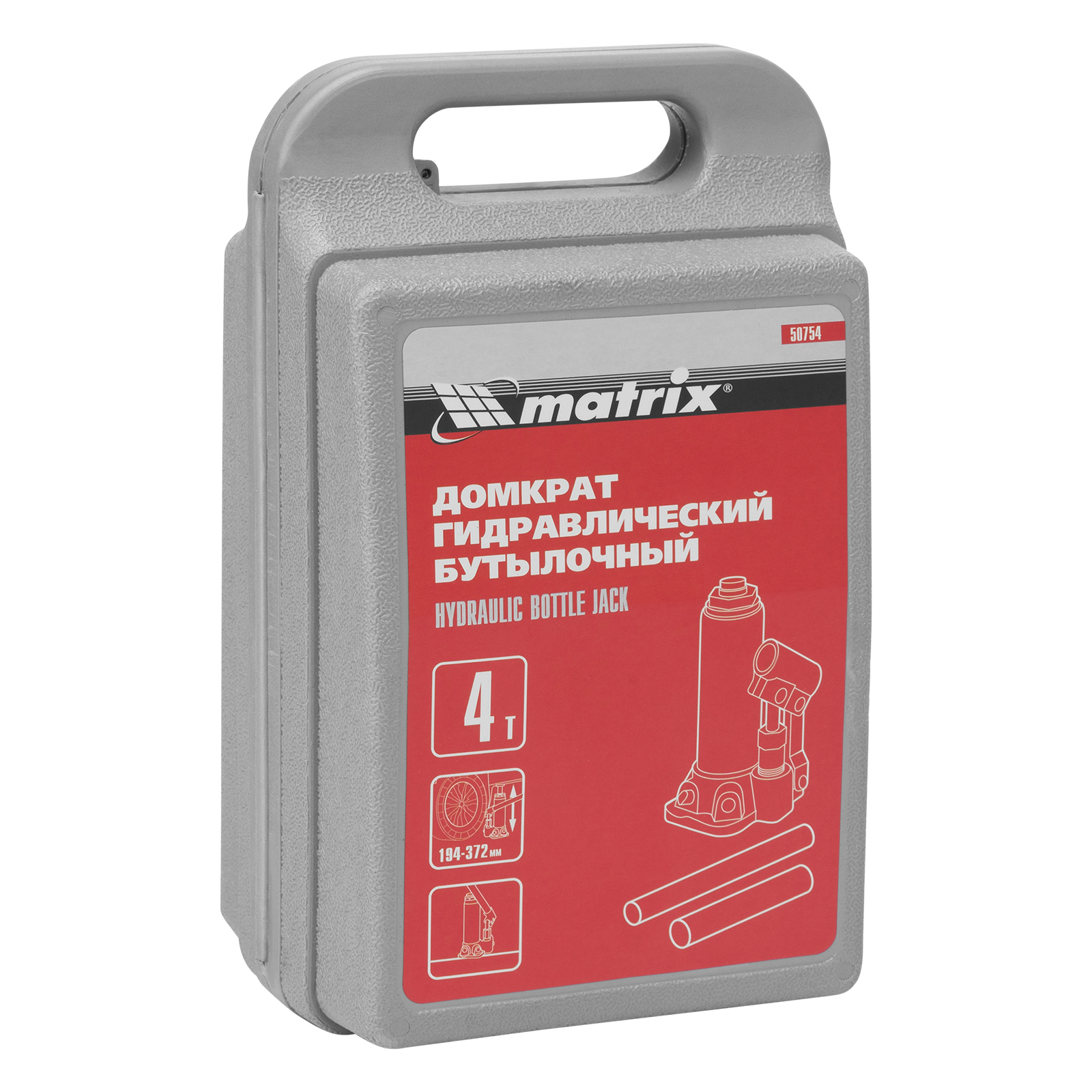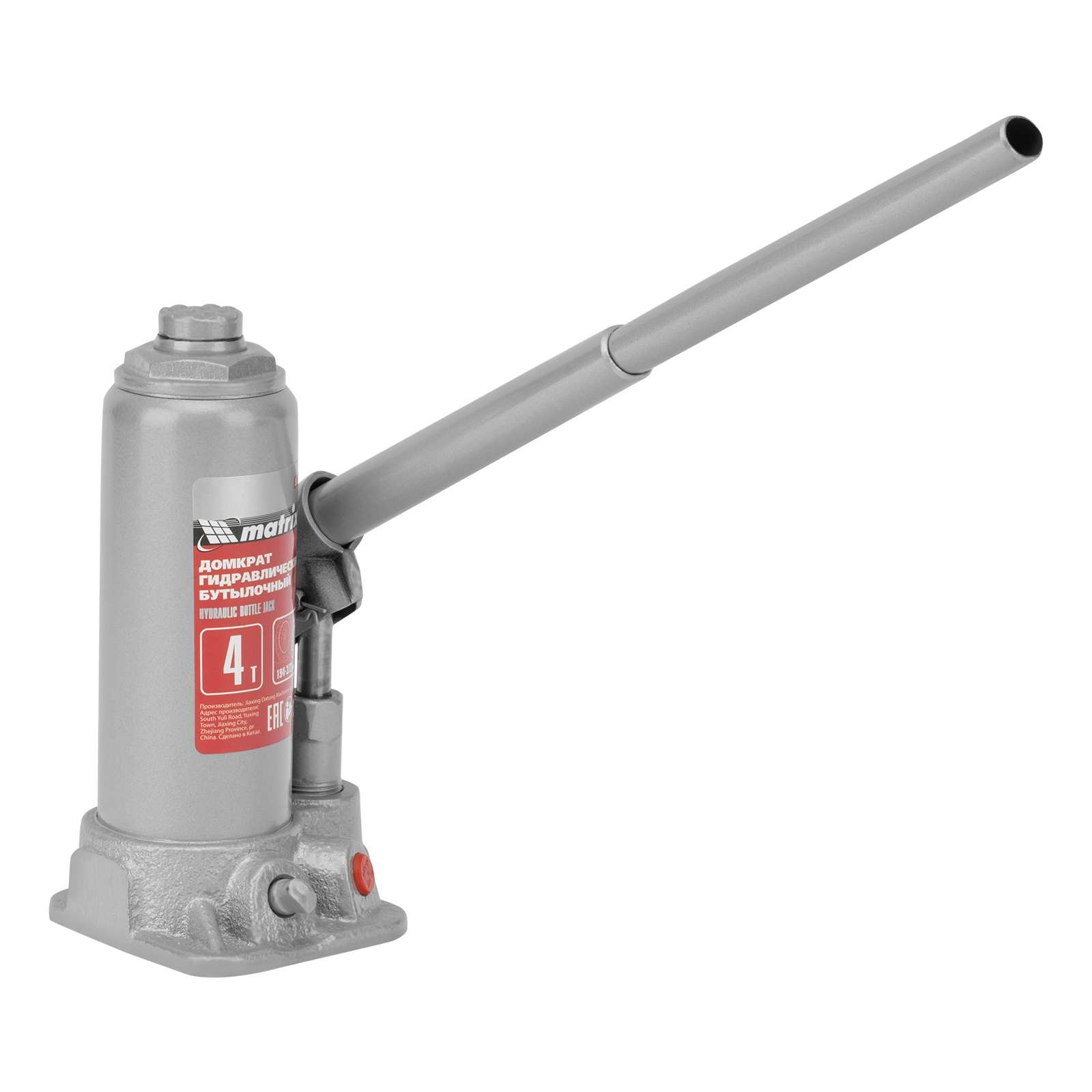 Домкрат гидравлический бутылочный Matrix 50754 предназначен для подъема грузов массой до 4 т на высоту от 194 до 372 мм. Оптимален для машин с большим клиренсом. Будет полезен автолюбителям при проведении технического обслуживания и ремонте авто в дороге или в гараже. Также домкрат подходит для полупрофессионального применения на станциях ТО.