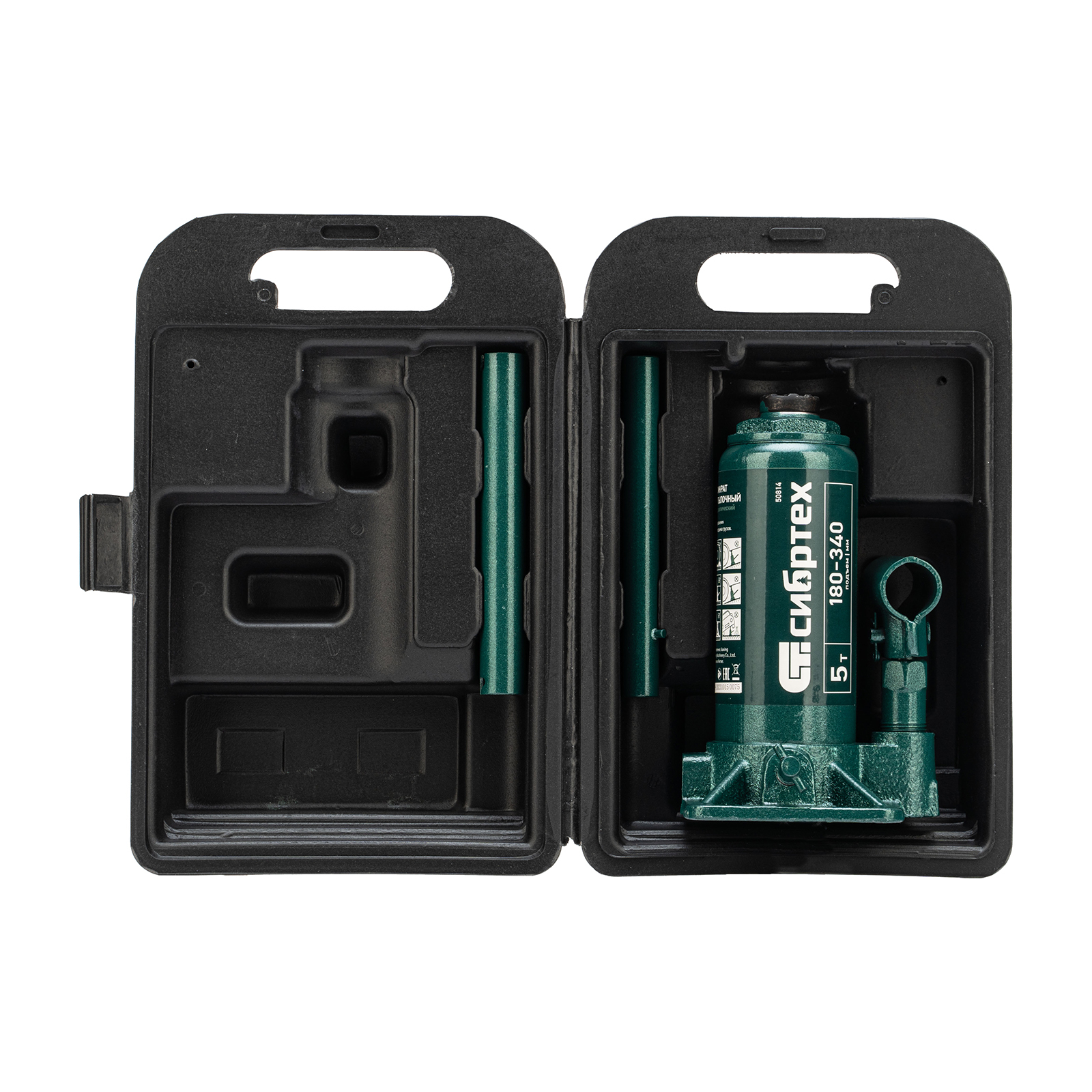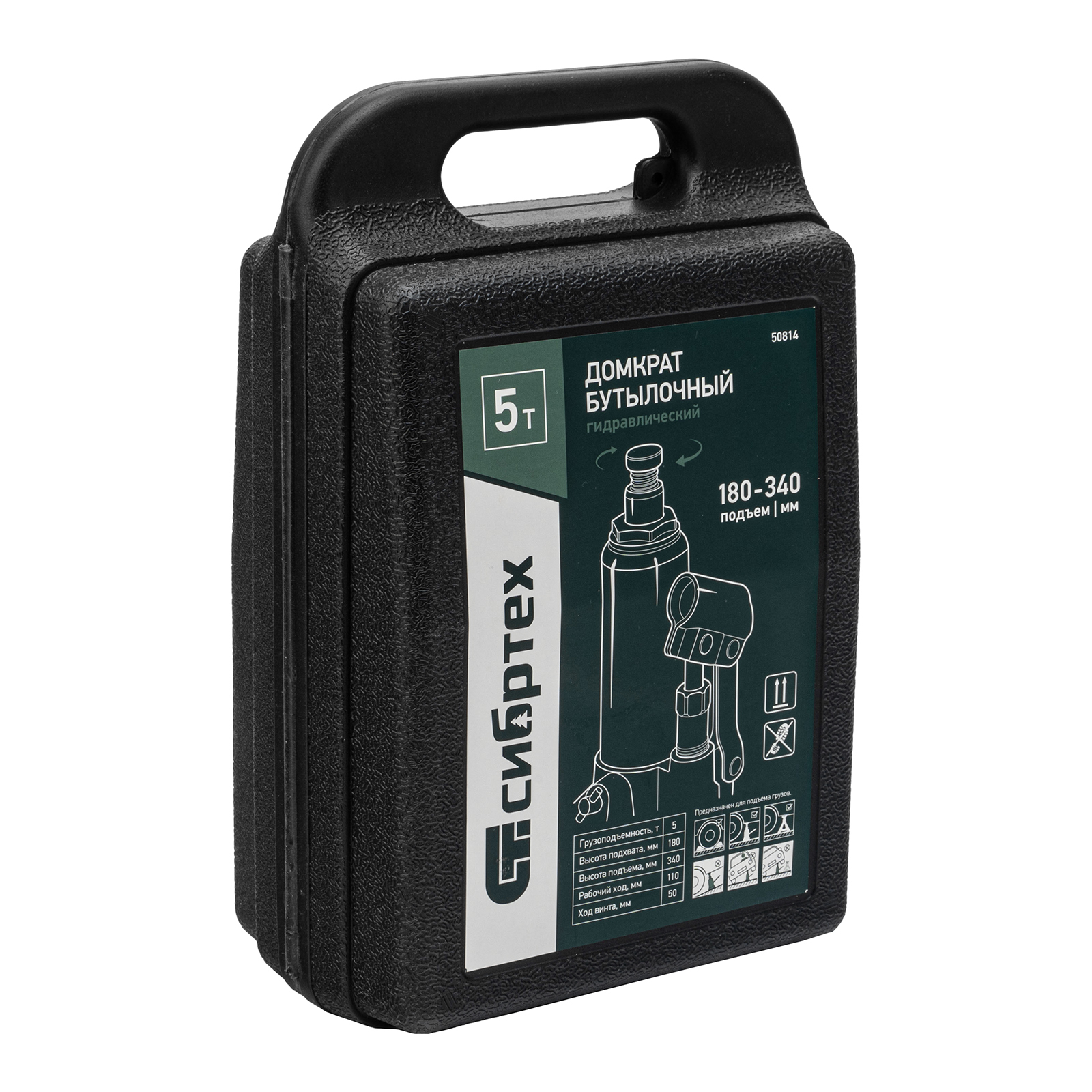 Домкрат гидравлический бутылочный Сибртех 50814, поставляющийся в пластиковом кейсе, предназначен для подъема грузов массой до 5 т на высоту от 180 до 340 мм. Не требует больших усилий от пользователя и значительно облегчает рабочий процесс. Домкрат будет полезен при проведении техобслуживания машины в автосервисе или гараже.