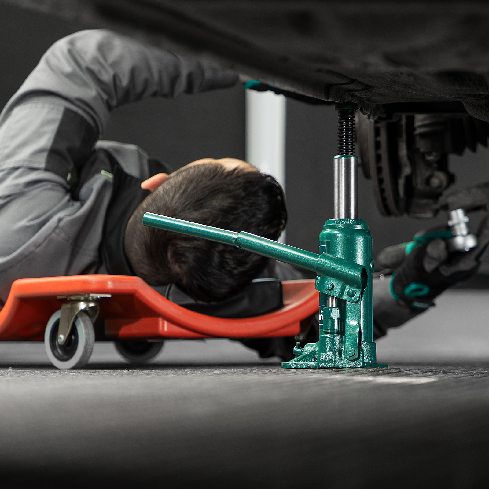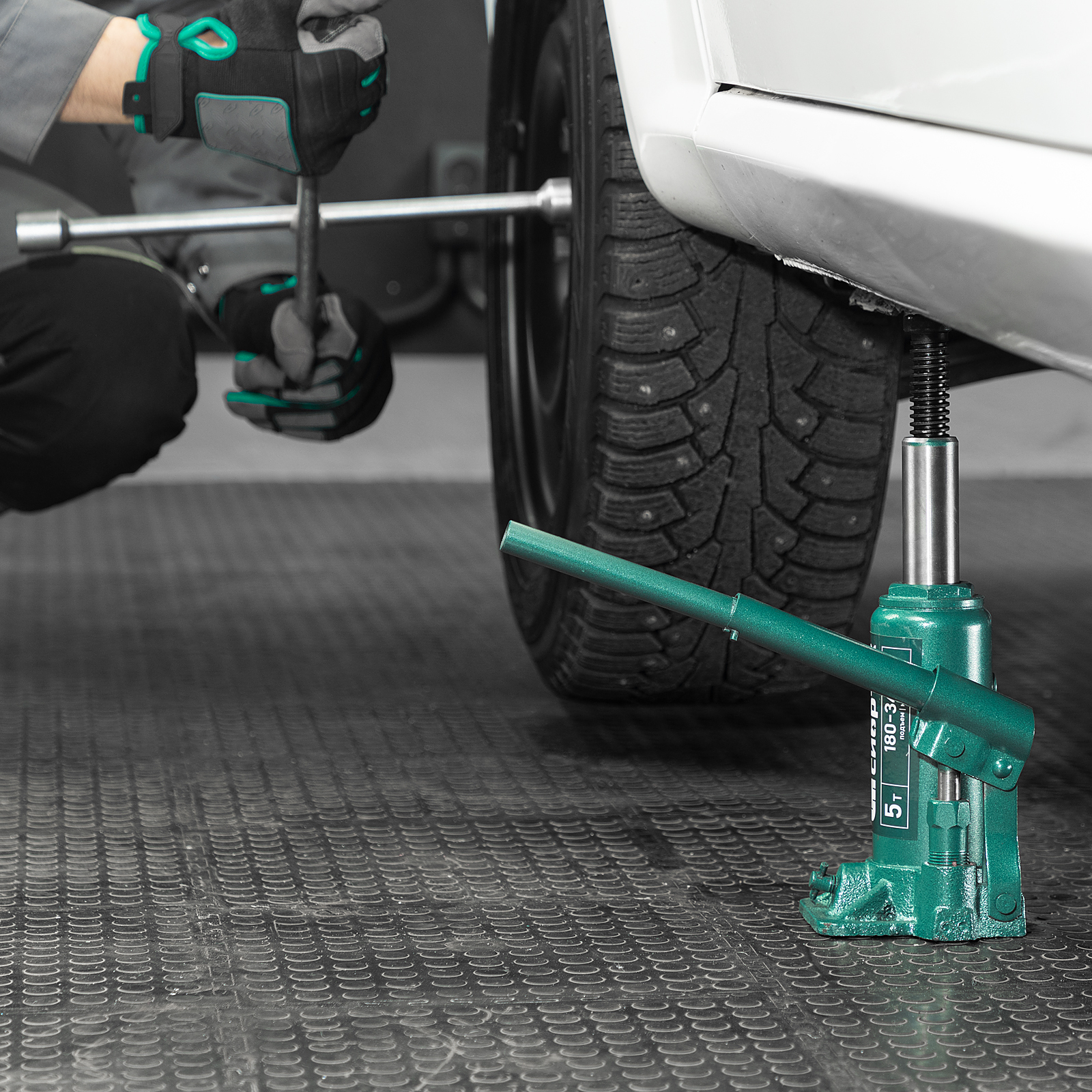 - Удобное хранение и транспортировка — домкрат весит всего 2,8 кг и поставляется в прочном пластиковом кейсе с рукояткой.