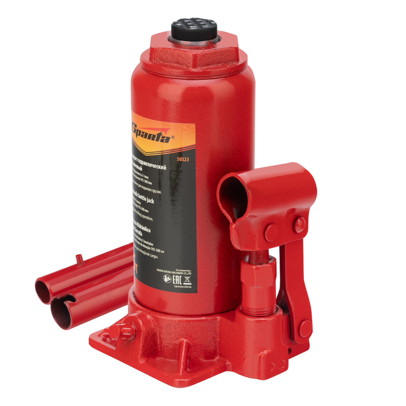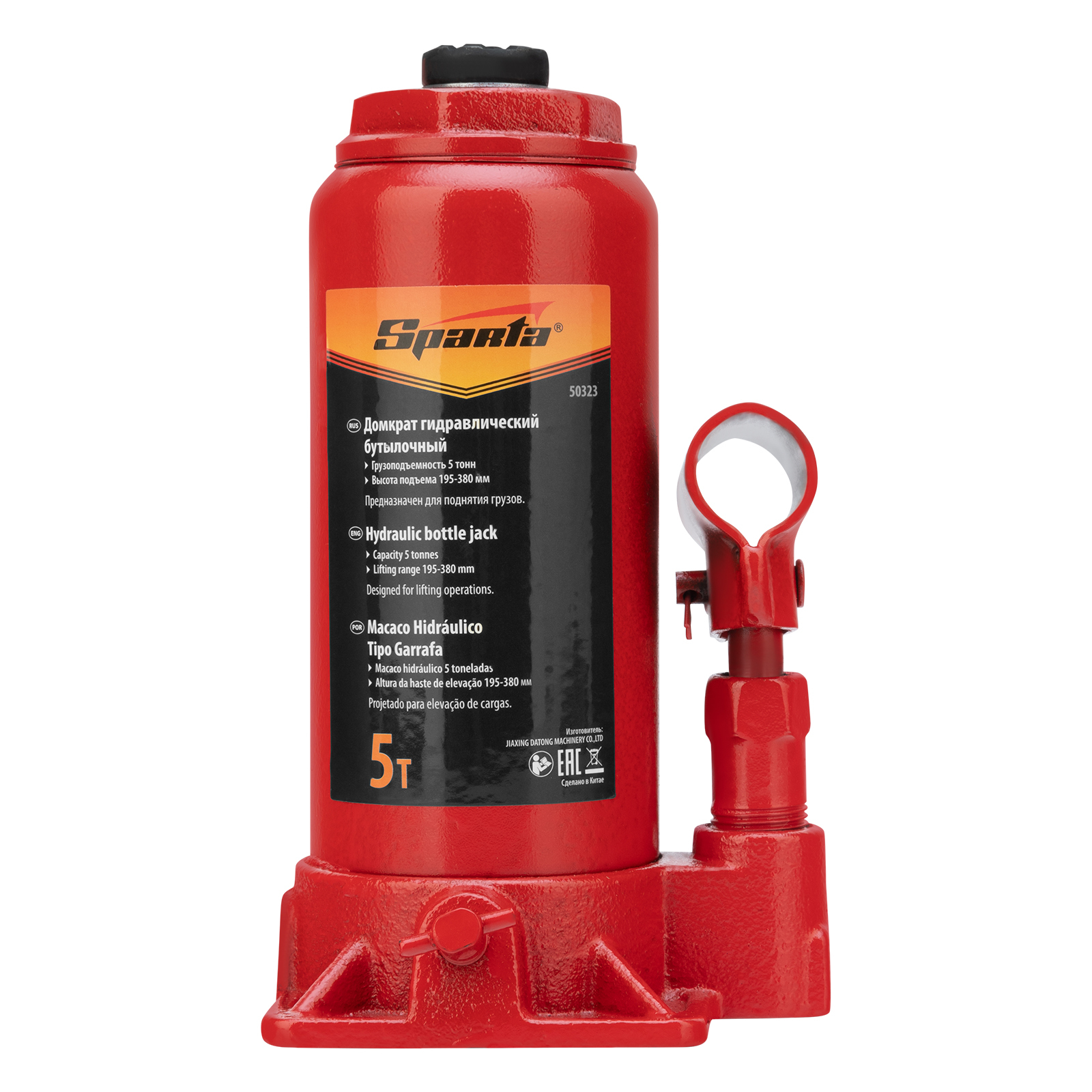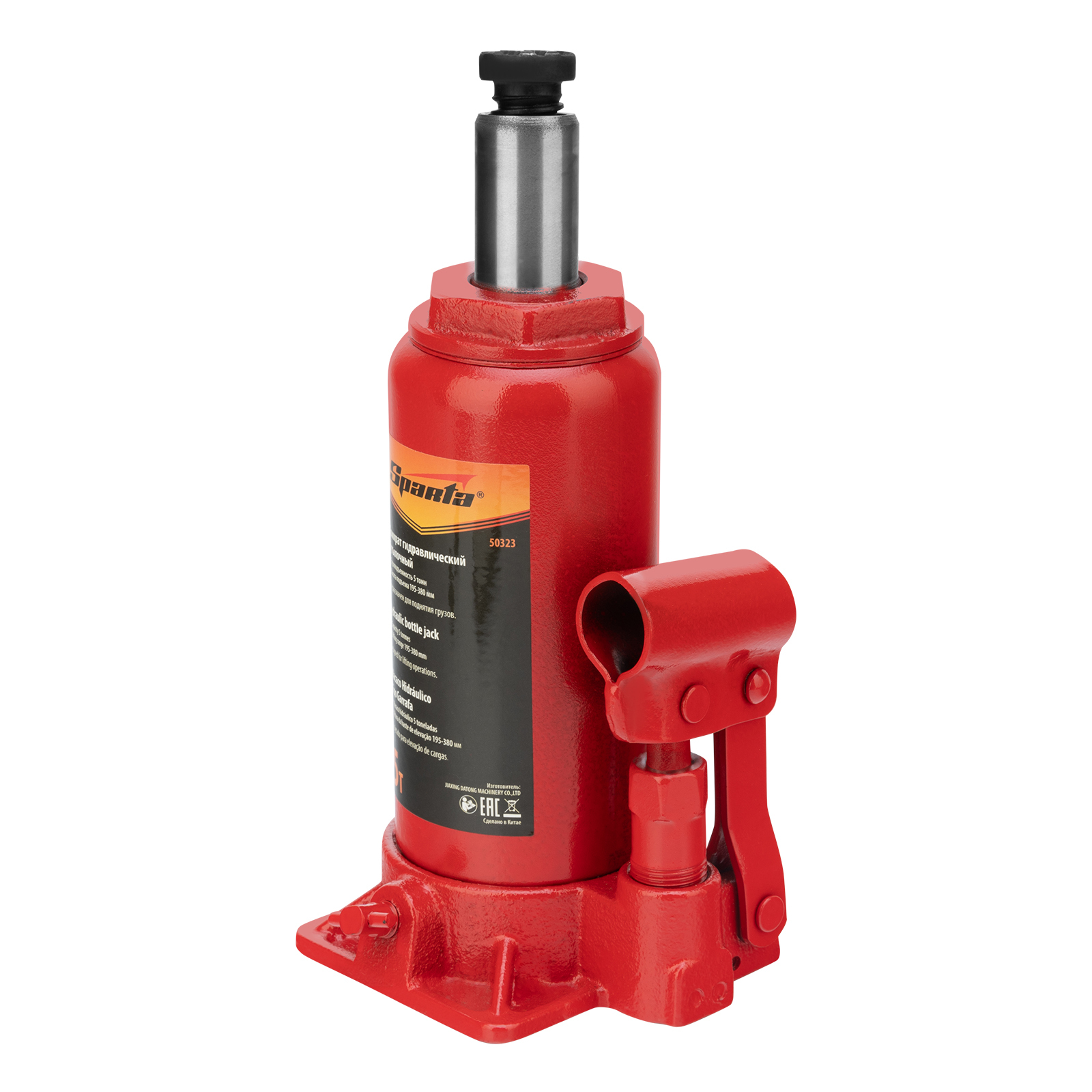 Гидравлический бутылочный домкрат Sparta 50323 рассчитан на подъем грузов весом до 5 т на высоту от 195 до 380 мм. Он пригодится как автолюбителям в гараже, так и профессиональным мастерам в автосервисах. Домкрат обеспечивает плавный подъем груза без особых усилий со стороны пользователя.