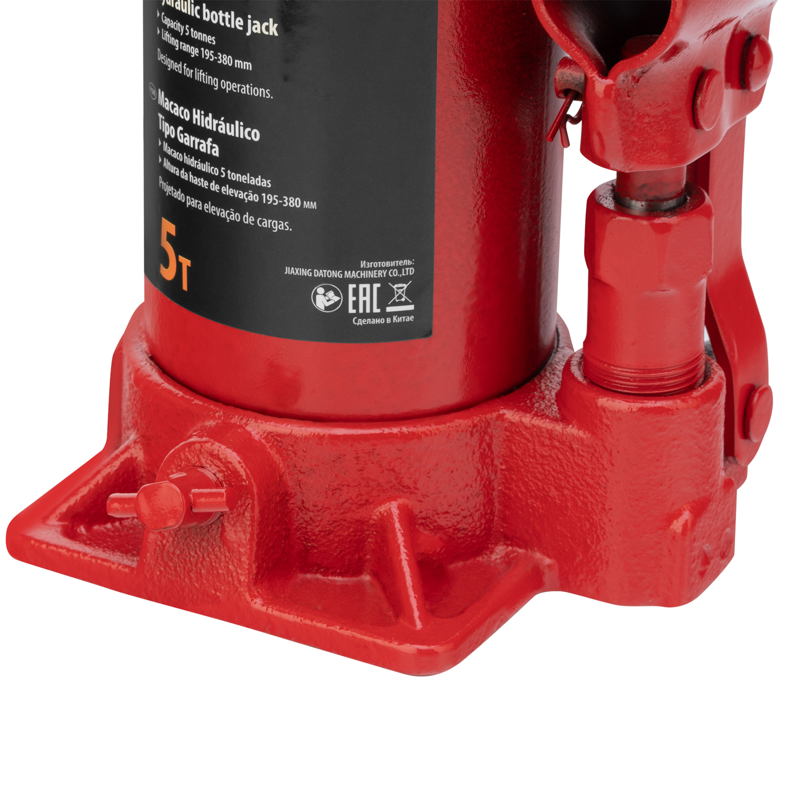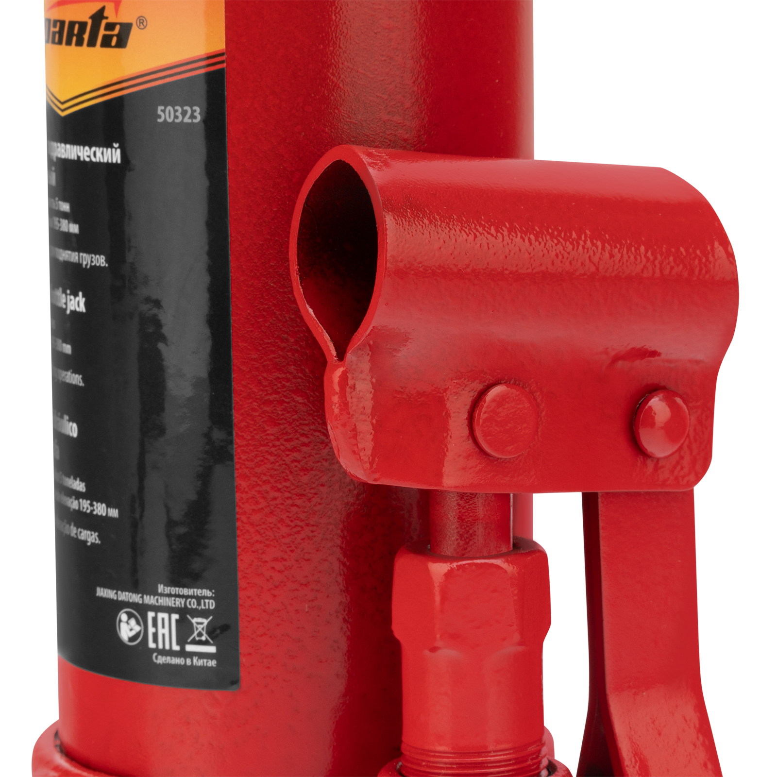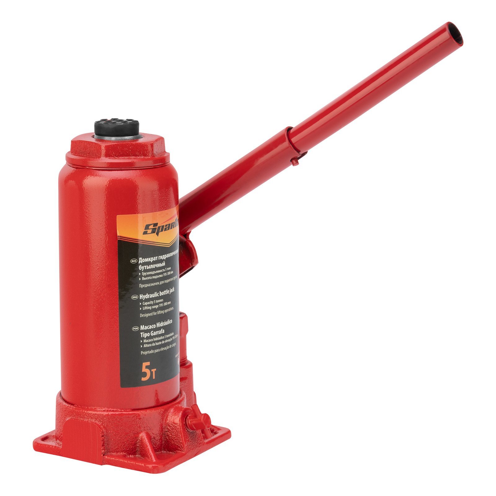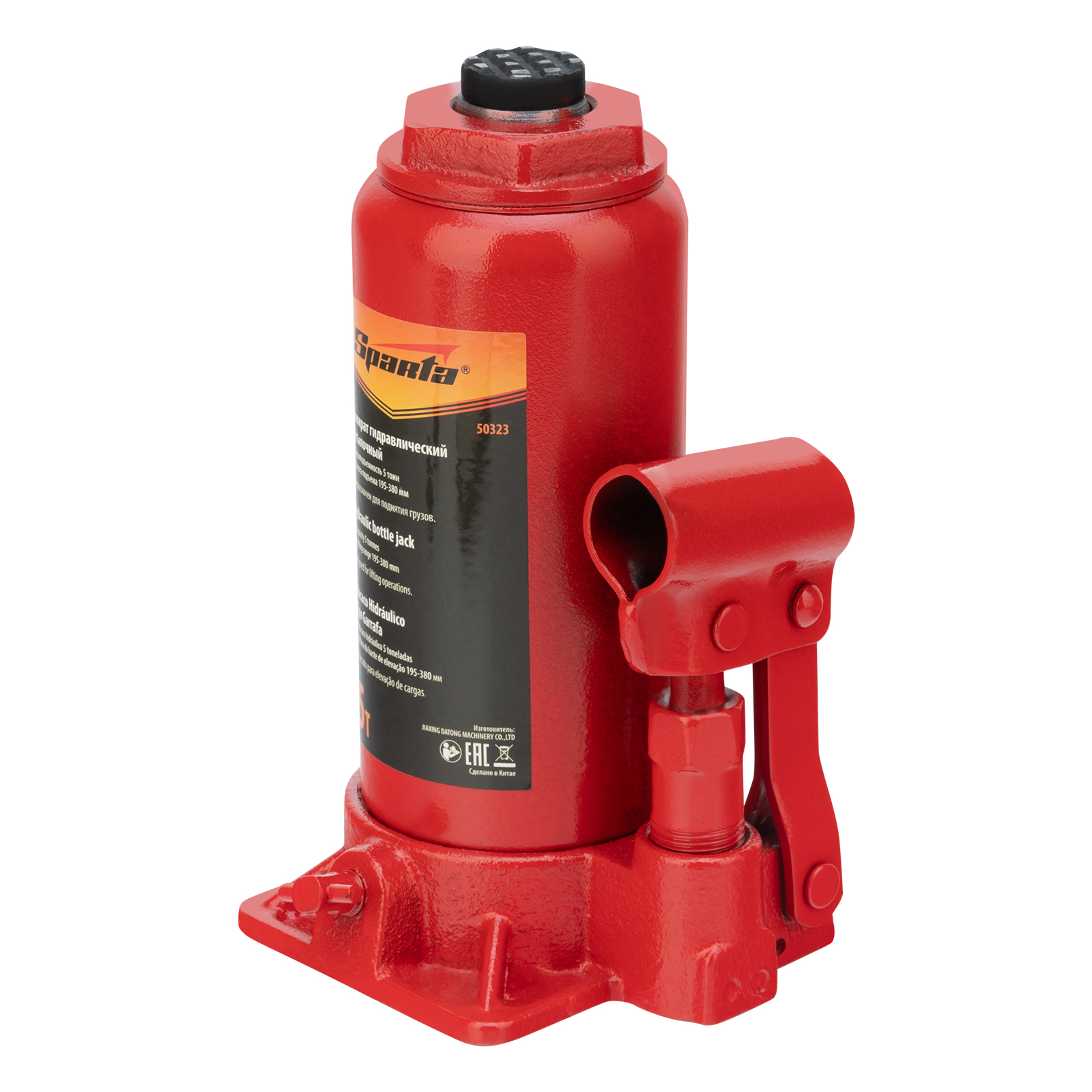 Гидравлический бутылочный домкрат Sparta 50323 рассчитан на подъем грузов весом до 5 т на высоту от 195 до 380 мм. Он пригодится как автолюбителям в гараже, так и профессиональным мастерам в автосервисах. Домкрат обеспечивает плавный подъем груза без особых усилий со стороны пользователя.