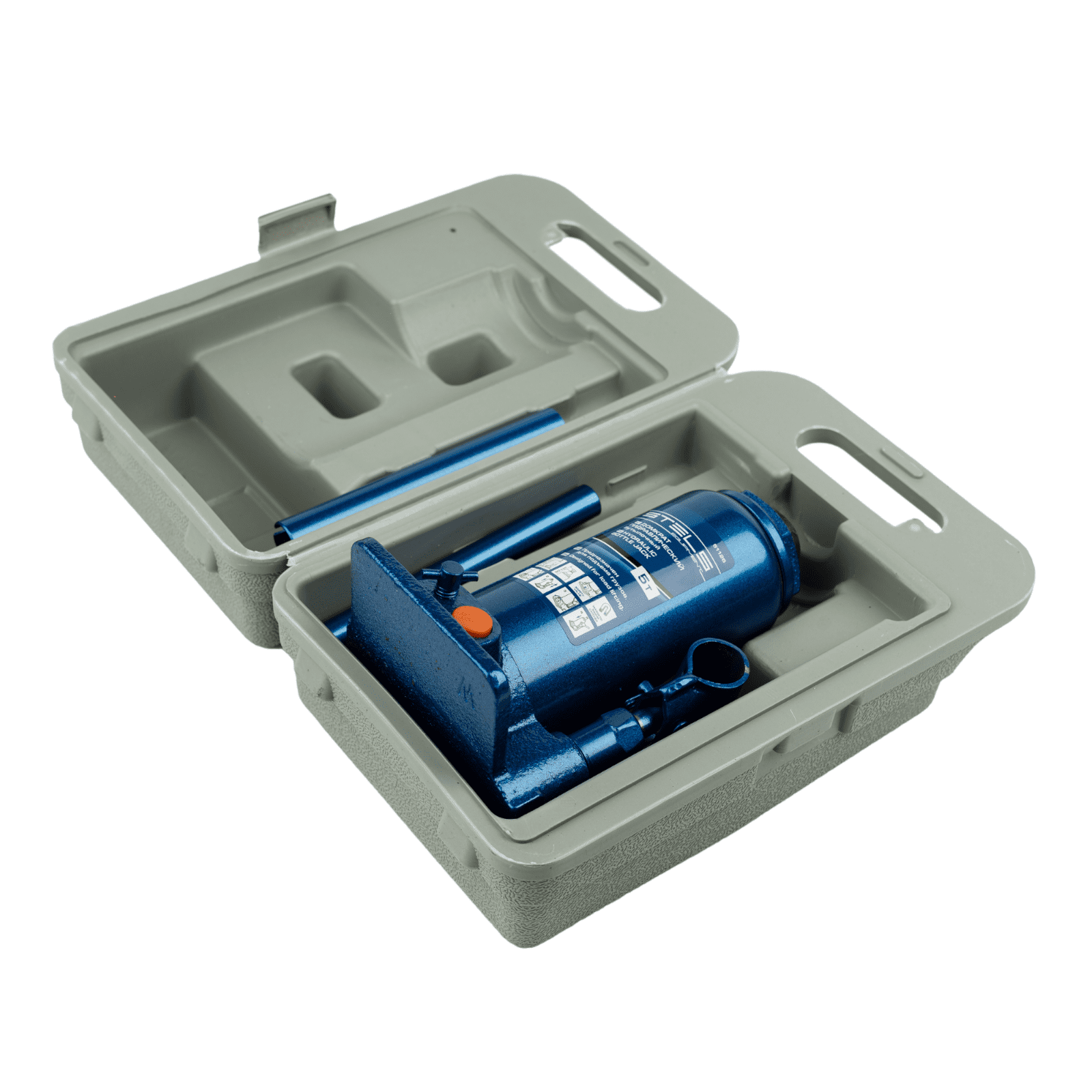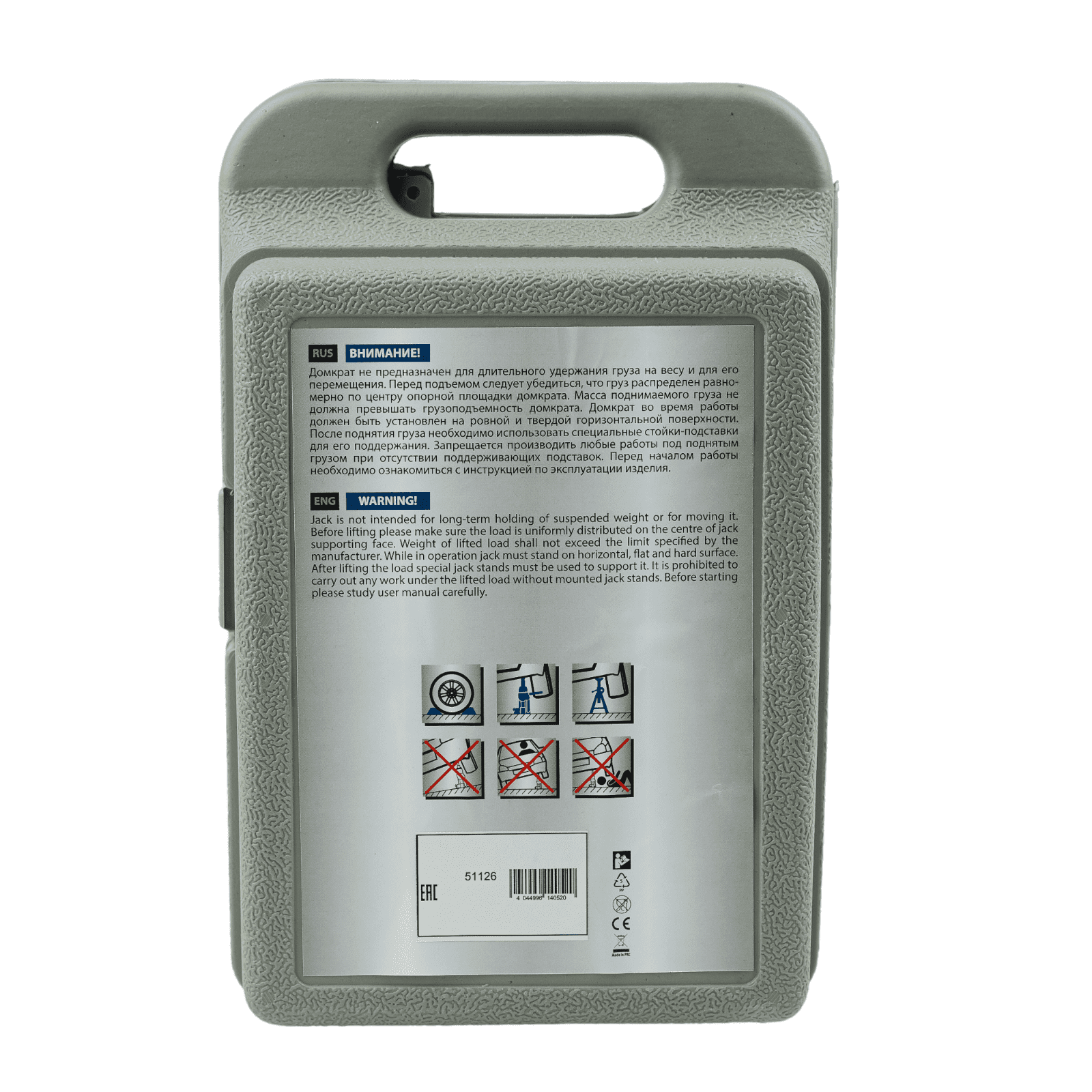 - Удобное хранение и транспортировка — домкрат поставляется в прочном пластиковом кейсе.