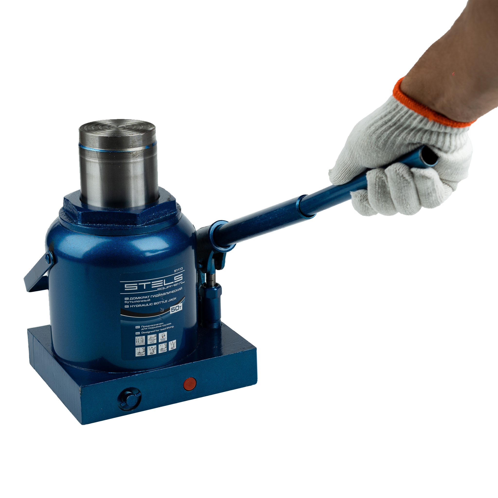 Гидравлический бутылочный домкрат Stels 51113 способен поднимать грузы массой до 50 т на высоту с 236 до 356 мм. Устанавливается на ровной твердой горизонтальной поверхности и позволяет разместить под грузом жесткую опору перед выполнением дальнейших работ. Используется на предприятиях автосервиса, применяется во время ремонта и строительства.