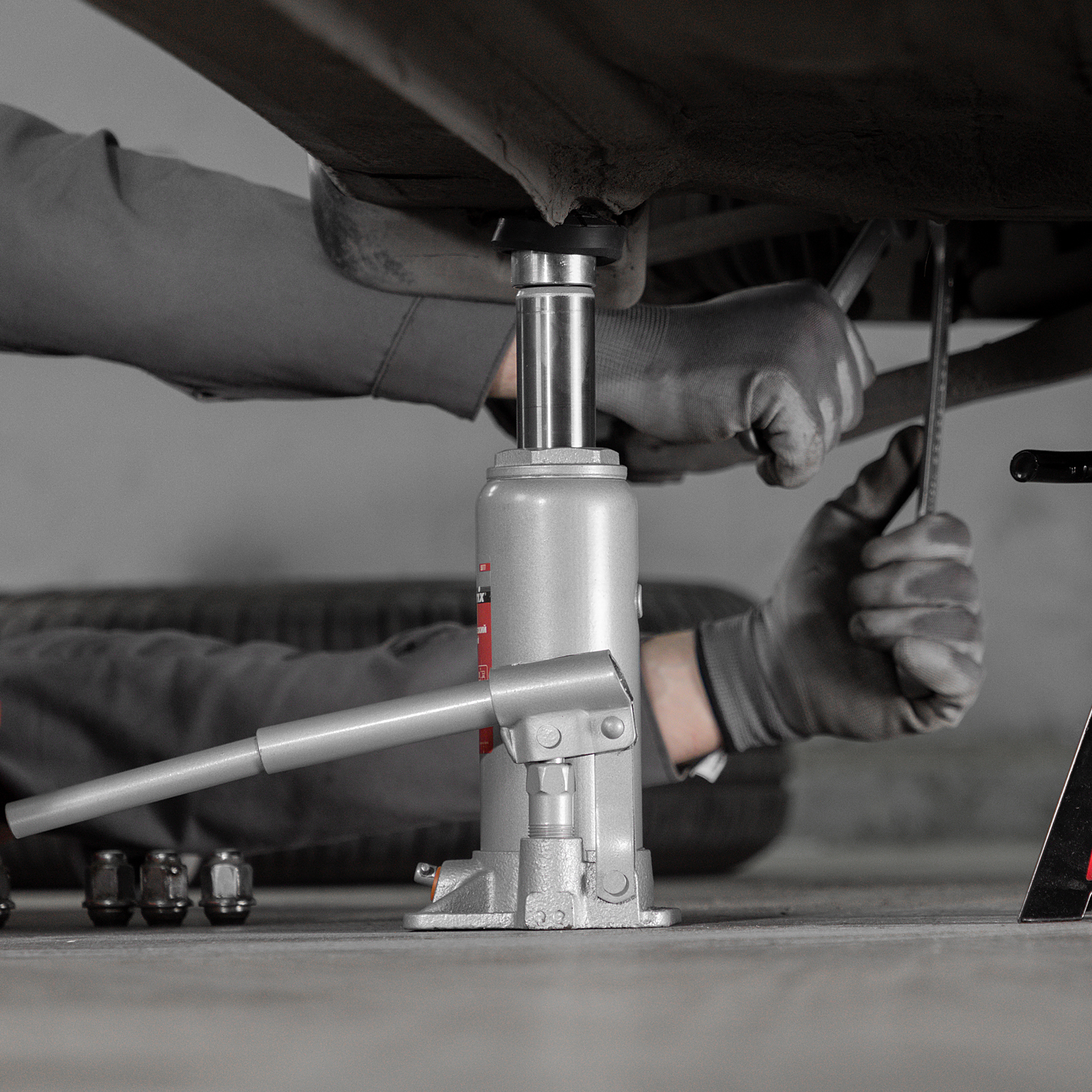 - Удобная транспортировка — домкрат весом 4,3 кг легко помещается в багажник авто.