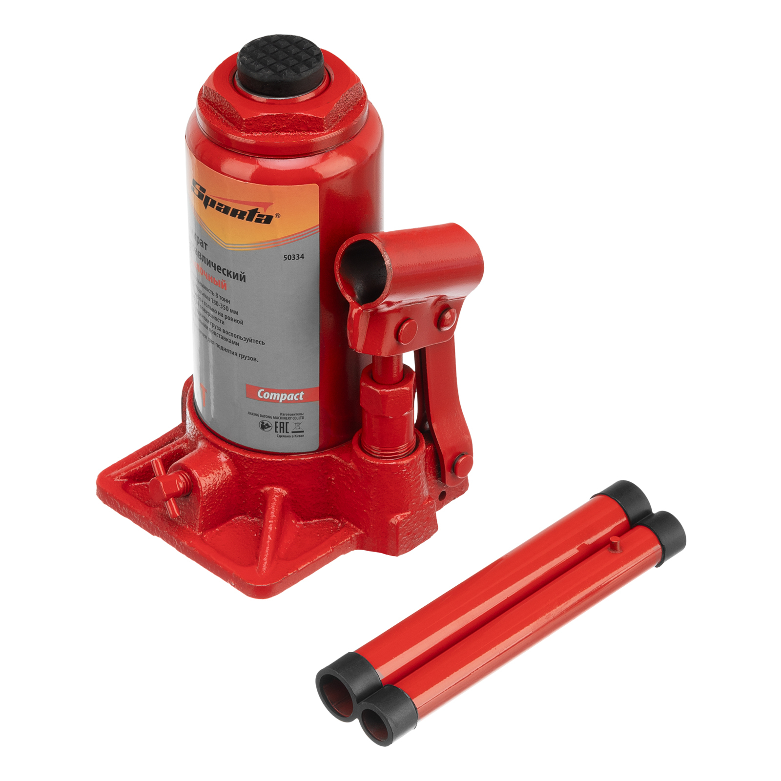 Гидравлический бутылочный домкрат Sparta Compact 50334 предназначен для подъема грузов весом до 8 т на высоту 180-350 мм. Существенно облегчает рабочий процесс, т.к. не требует больших усилий от пользователя. Домкрат будет полезен в автосервисе и гараже для проведения технического обслуживания авто.