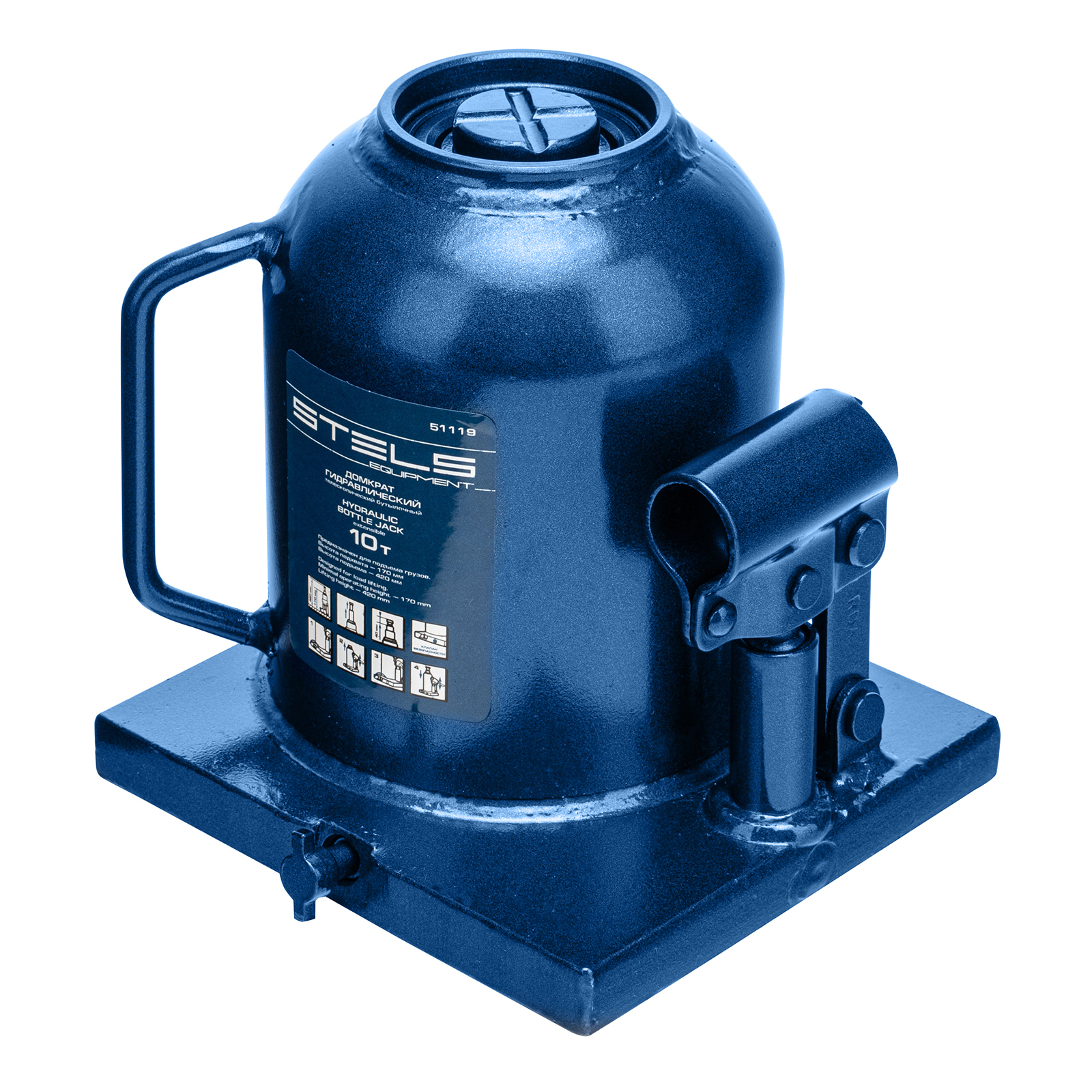 Гидравлический бутылочный телескопический домкрат Stels 51119 используется для поднятия грузов весом до 10 т с на высоту 170-430 мм. Не требует больших усилий и оптимален для автомобилей с большим клиренсом. Домкрат можно использовать в гараже для самостоятельного ремонта машины или в автосервисе для решения профессиональных задач.