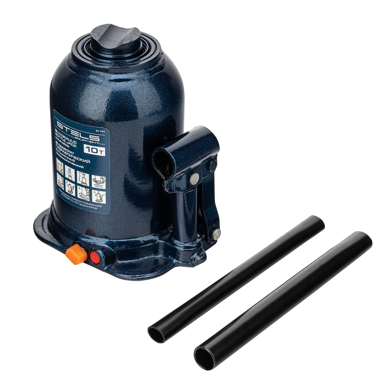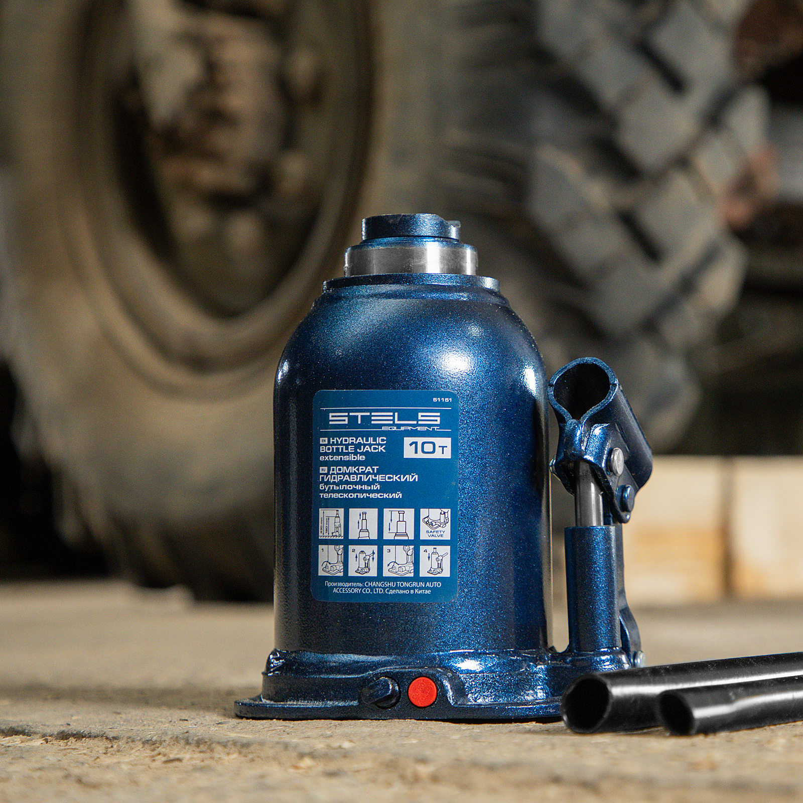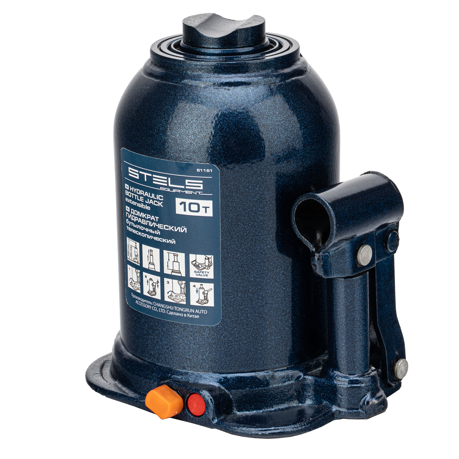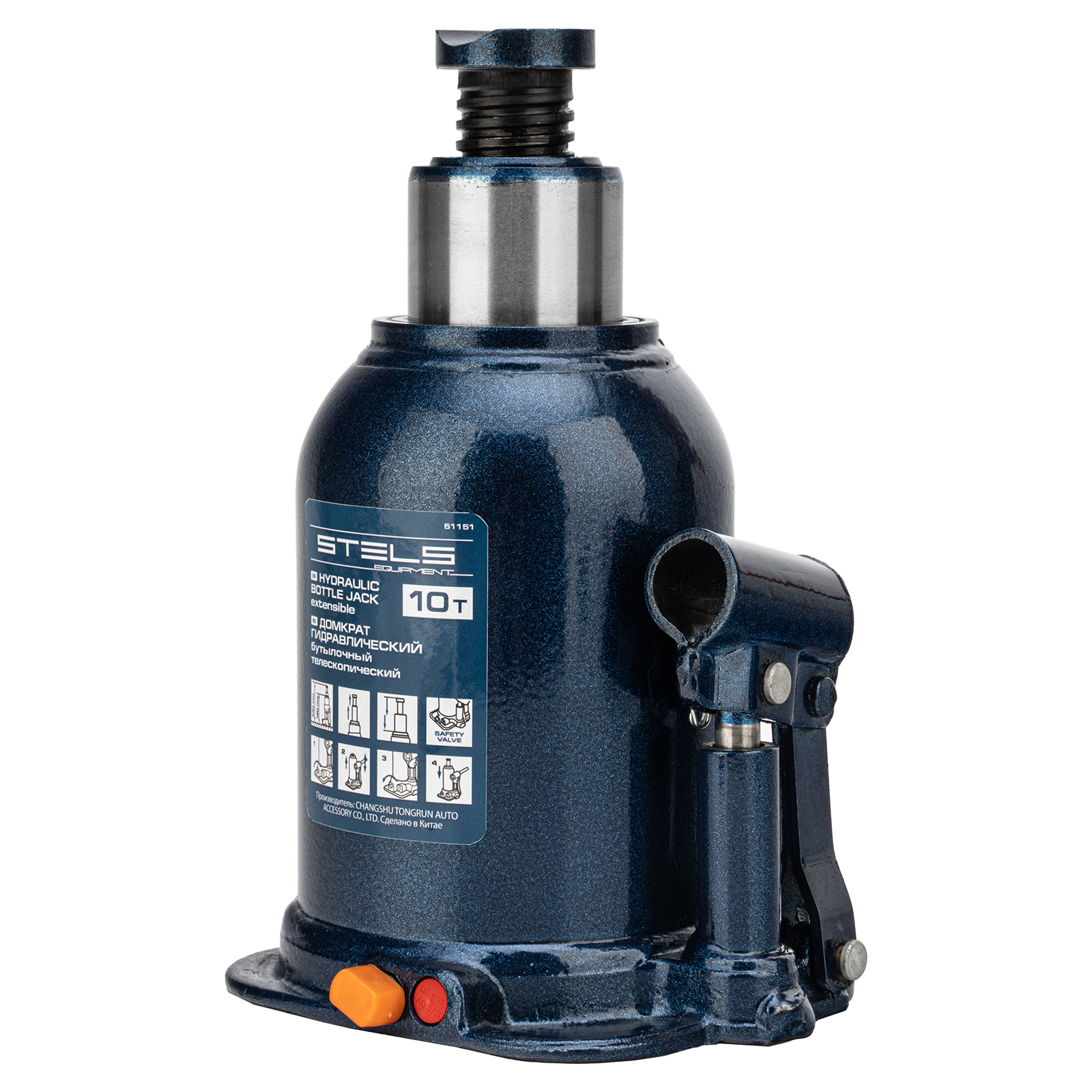 Домкрат гидравлический бутылочный Stels 51151, телескопический, используется для поднятия грузов весом до 10 т с на высоту 180-430 мм. Не требует больших усилий и оптимален для автомобилей с большим клиренсом. Домкрат можно использовать в гараже для самостоятельного ремонта машины или в автосервисе для решения профессиональных задач.